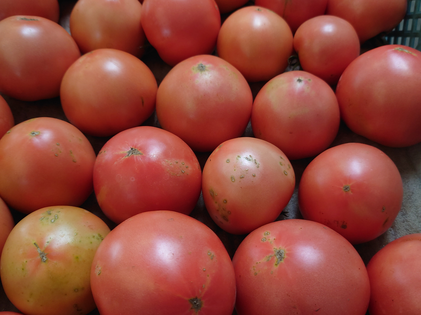 規格外品やすれ、きず、焼けなど見た目が悪いトマトです。ご自宅で手軽に食べたい。カレーやスープ調理用に贅沢にトマトを使いたい方にオススメです。