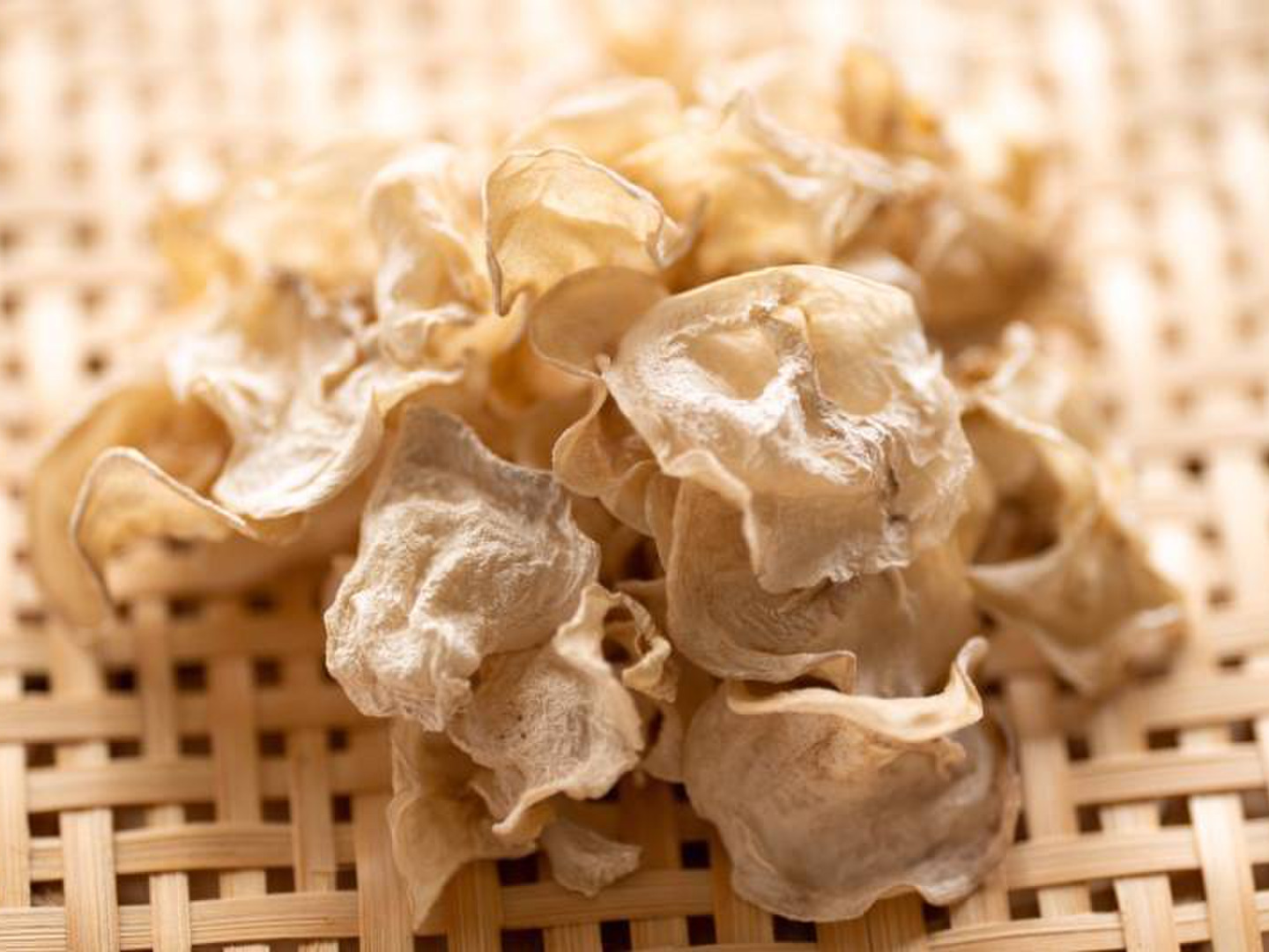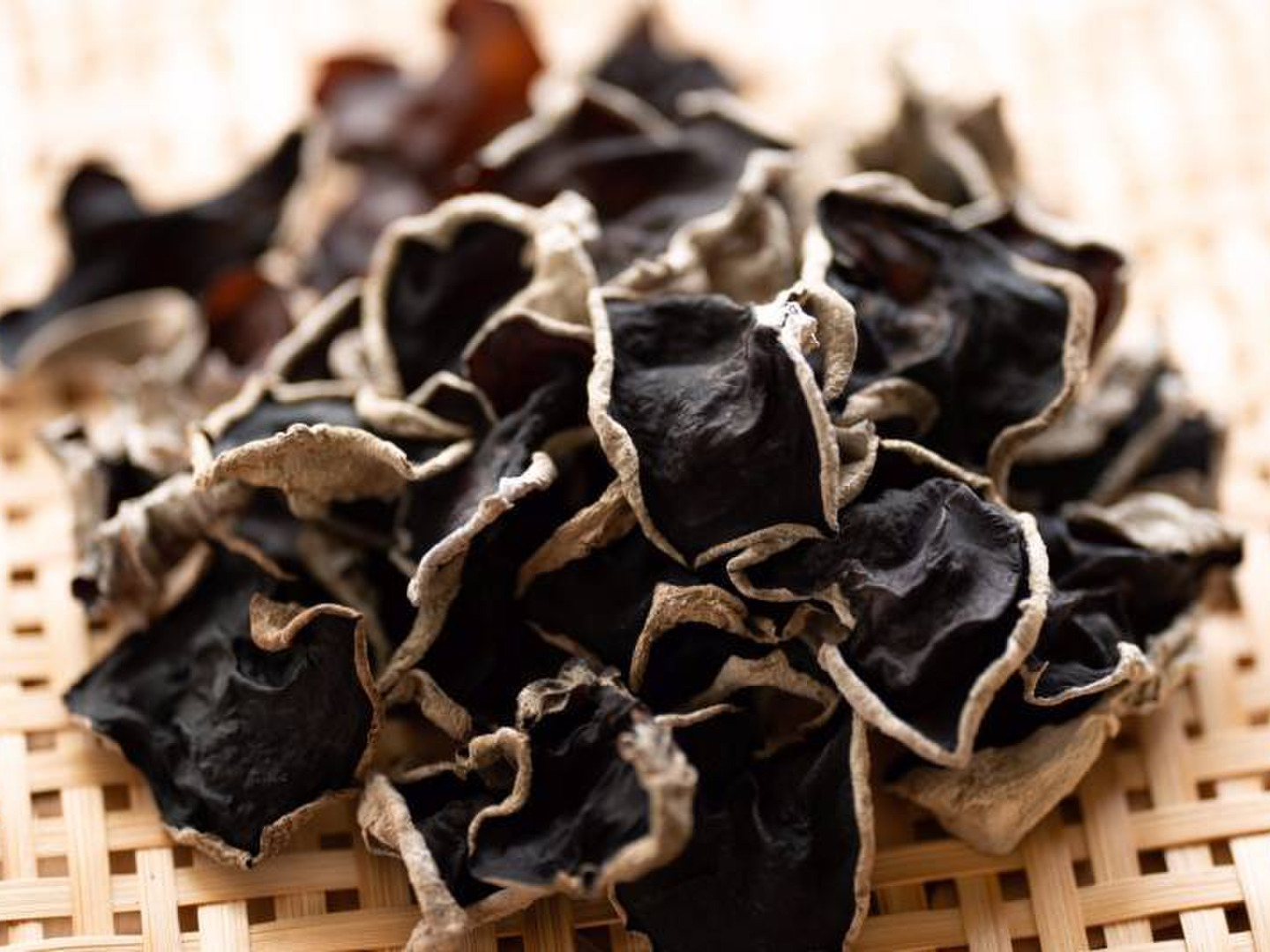 天日干しして栄養価を高めた、黒と白の乾燥きくらげ。