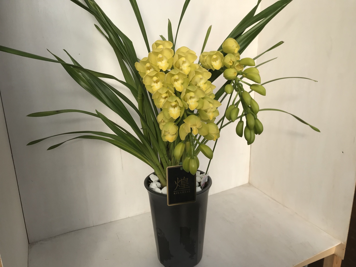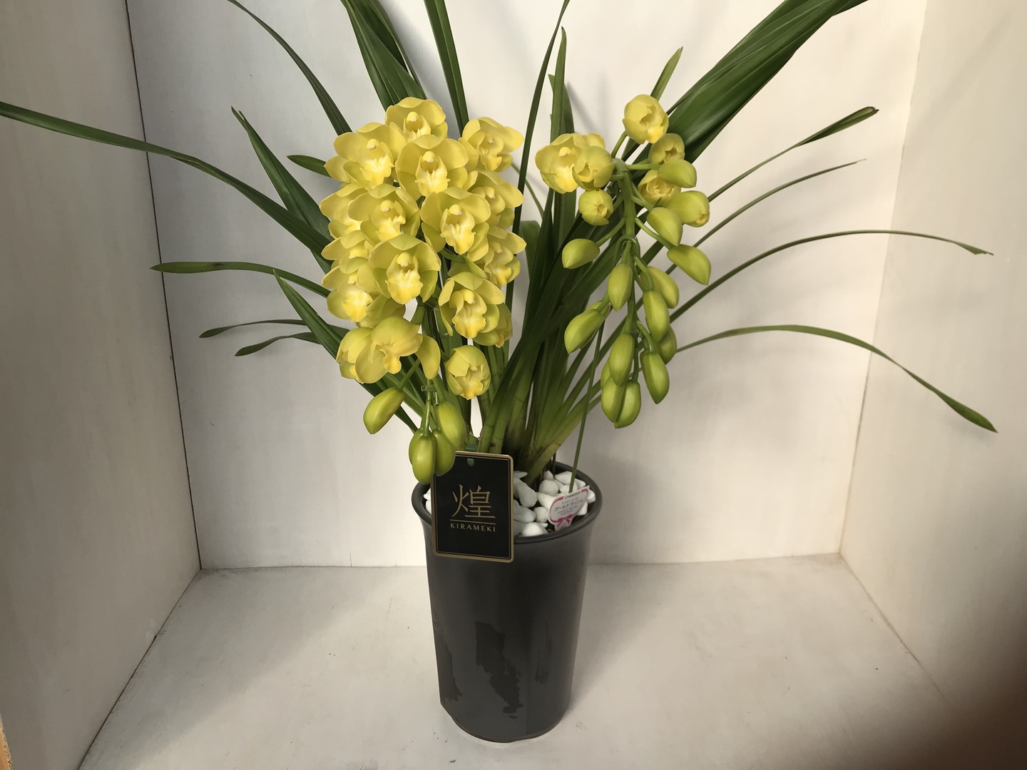 商品について あわせ買い対象 同生産者の別の「あわせ買い対象」商品と一緒にご注文いただくと、送料をまとめてお届けできる場合があります。 生産者からのお知らせ 【販売期間のお知らせ】毎年11月中旬から12月下旬にかけて販売しています。その他の期間では販売しておりませんのでご承知おきください。販売期間中は無休で営業しております。どうぞよろしくお願いいたします。 もっと見る 内容 シンビジウム1鉢 重量・容量 約5kg 発送 ヤマト運輸(食べチョク特別送料) 送料 ¥ 常温便 + ¥ 0 数量1点ごとに送料が発生します。 種別 花・植物 草花 シンビジウム 産地 愛知県 慣行栽培 花・植物 贈答品 家庭用 シンビジウム 愛知県x花・植物 愛知県x草花 愛知県xシンビジウム 商品説明 【陶器鉢の色について】写真は黒の鉢を使っていますが、今年は白の鉢でのお届けになります。ご了承ください。【発送サイズについて】システム上、発送サイズを160にしていますが、本商品は180サイズでお送りします。【品種】品種名:煌(きらめき)明るい黄色11月中旬~11月下旬開花予定ゴールドラッシュという黄花赤リップの品種の変異個体です。当園で見つけたものを育てています。葉の色は濃く、明るい黄色との調和がとても良い。中輪よりも小輪で、リップも黄色のコンカラー。株元に差してある立て札は、この品種だけ特別に黒地に金文字で作っています。可愛らしい中にも高級感を演出しています。※陶器鉢の色は指定できません。花色に合わせて当園にて見繕います。【置き場所】シンビジウムは寒い環境が得意なので、3度くらいの低温環境でも生きます。長く鑑賞するためには暖房の効いている部屋には置かないようにします。寒い玄関で皆様と共に来客を出迎えてくれます。【水やり】一週間に一回、コップ一杯300ccくらいの水で大丈夫です。陶器鉢の底には穴が開いていますので、受け皿をしてから水やりをおすすめします。寒く、光の少ない環境では少ない水で生きられます。温室にて開花させる時は、夜間の加温、十分な太陽光、晴れた日の水やりをしています。【栽培のこだわり】・開花について花を咲かせる時には、水と温度(昼、夜)が必要になります。開花が遅い場合、夜温を上げる(約18℃まで)場合もありますが、当園では4段サーモを使い極力低温(夜温10~15℃)でゆっくり開花させることで花もちが良くなっているようです。ご購入いただいた個人のお客様や販売店様からは、花もちが良くて嬉しいと評価をいただいています。・鉢サイズについて6.3号内容器という鉢を使っています。6号鉢よりも少し大きく、7号鉢よりも小ぶりに作り、郵送できるサイズ感を目指して栽培しています。3年という年月をかけて花を咲かせます。最後はお客様の下で有終の美を飾ってほしいと願っています。【産地の特徴】愛知県はシンビジウムの産地です。私の居る豊田市は県内でも生産者の多い地域です。東海地方に目をやると、大きく作る大先輩、極端に小さく作る先輩、蘭科植物のマニアックな種類を生産する方々など、ジャンルは多岐に亘ります。 もっと見る この商品のことをお友達にもシェアしませんか ポスト シェア