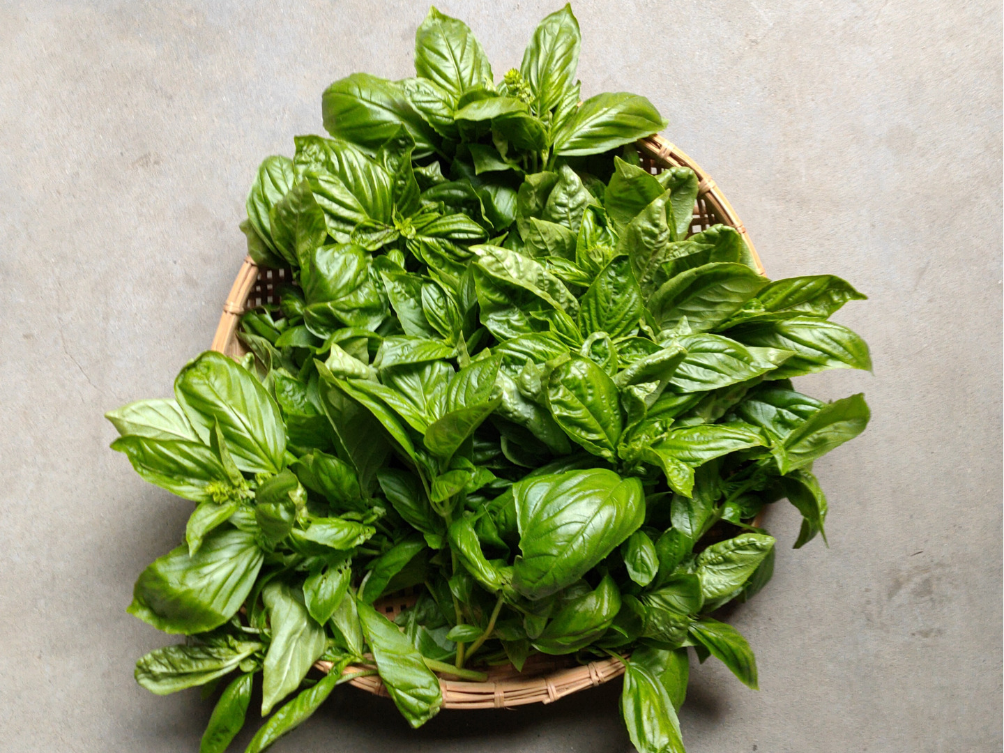 今だけ!貴重なオーガニックバジル!豊かな香り!繊維は柔らかく濃厚な味わいです【たっぷり500g!!】