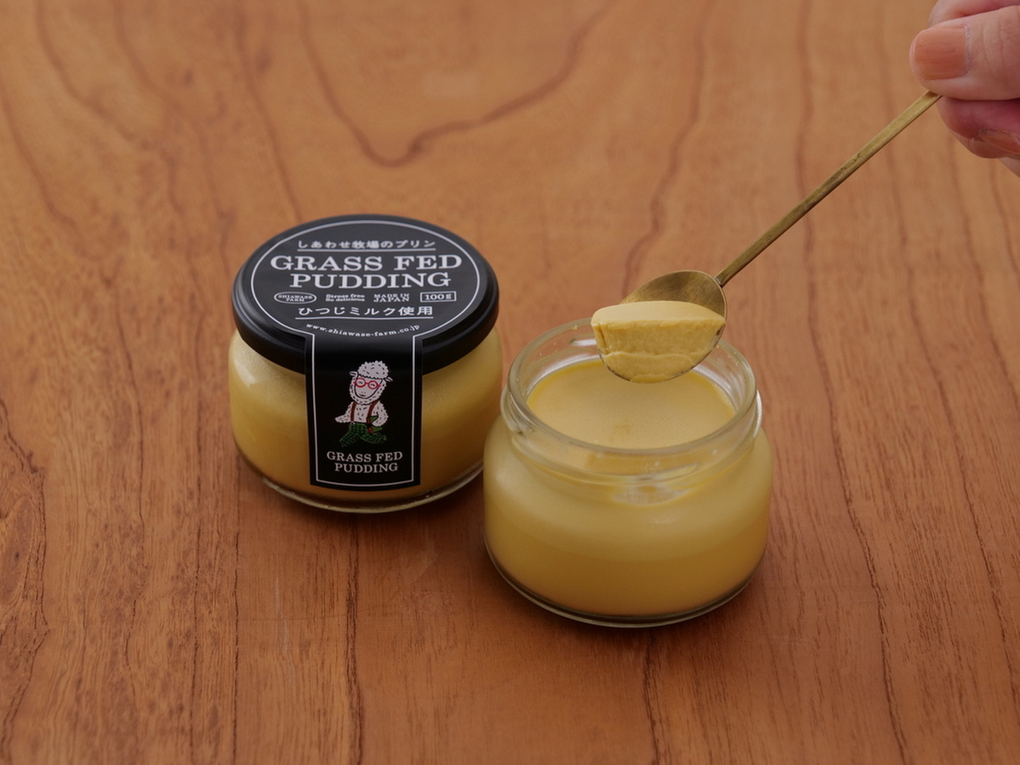 しあわせ牧場のしぼりたてグラスフェッドヤギミルクと岩手県産の地卵を使用して、濃密でなめらかな舌触りのプリンに仕上げました。 新鮮なヤギミルクで作ったしあわせなプリンを自家製ハチミツソースでお召し上がりください。