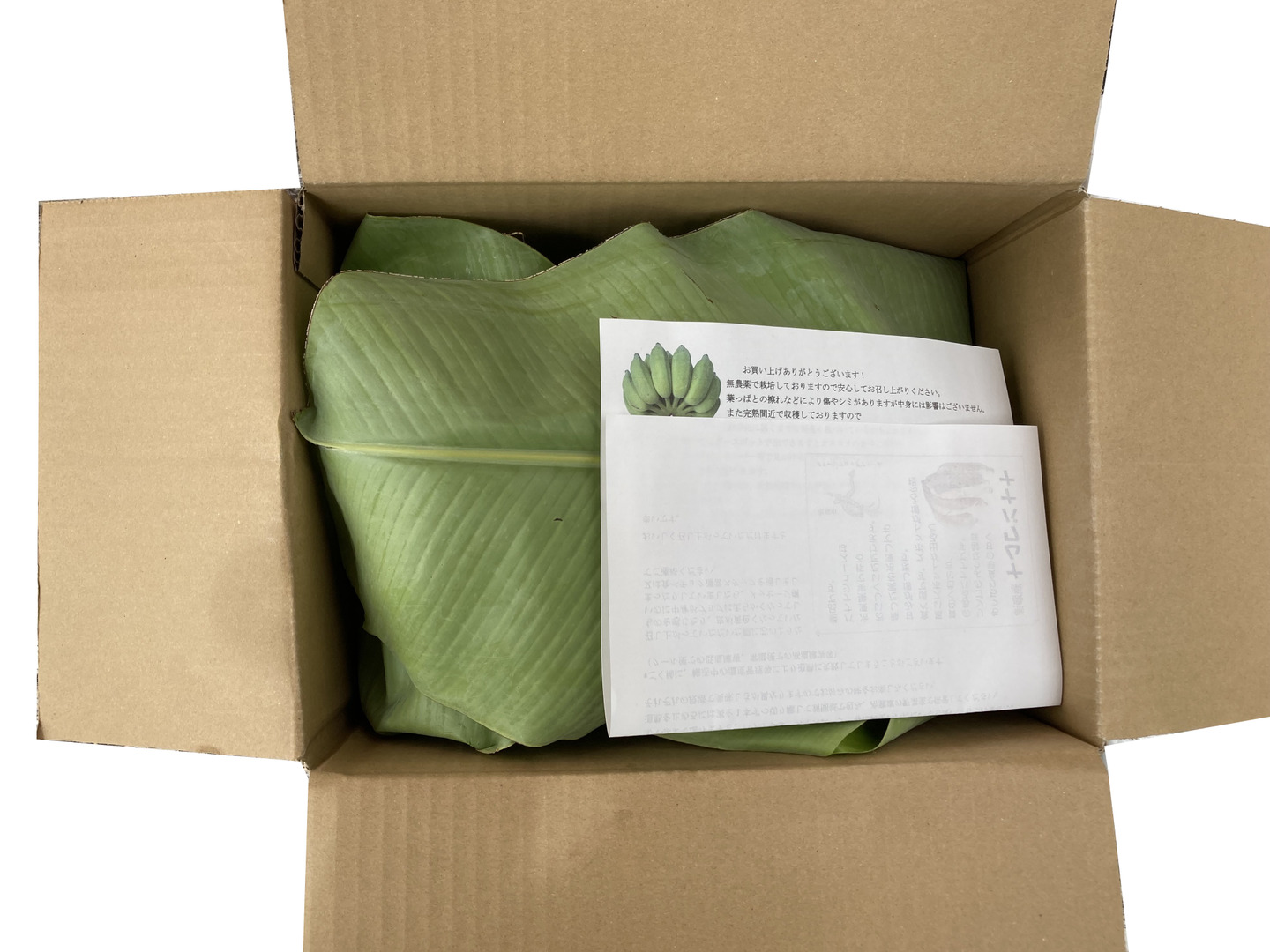 バナナの葉を緩衝材として使用しお届けいたします。