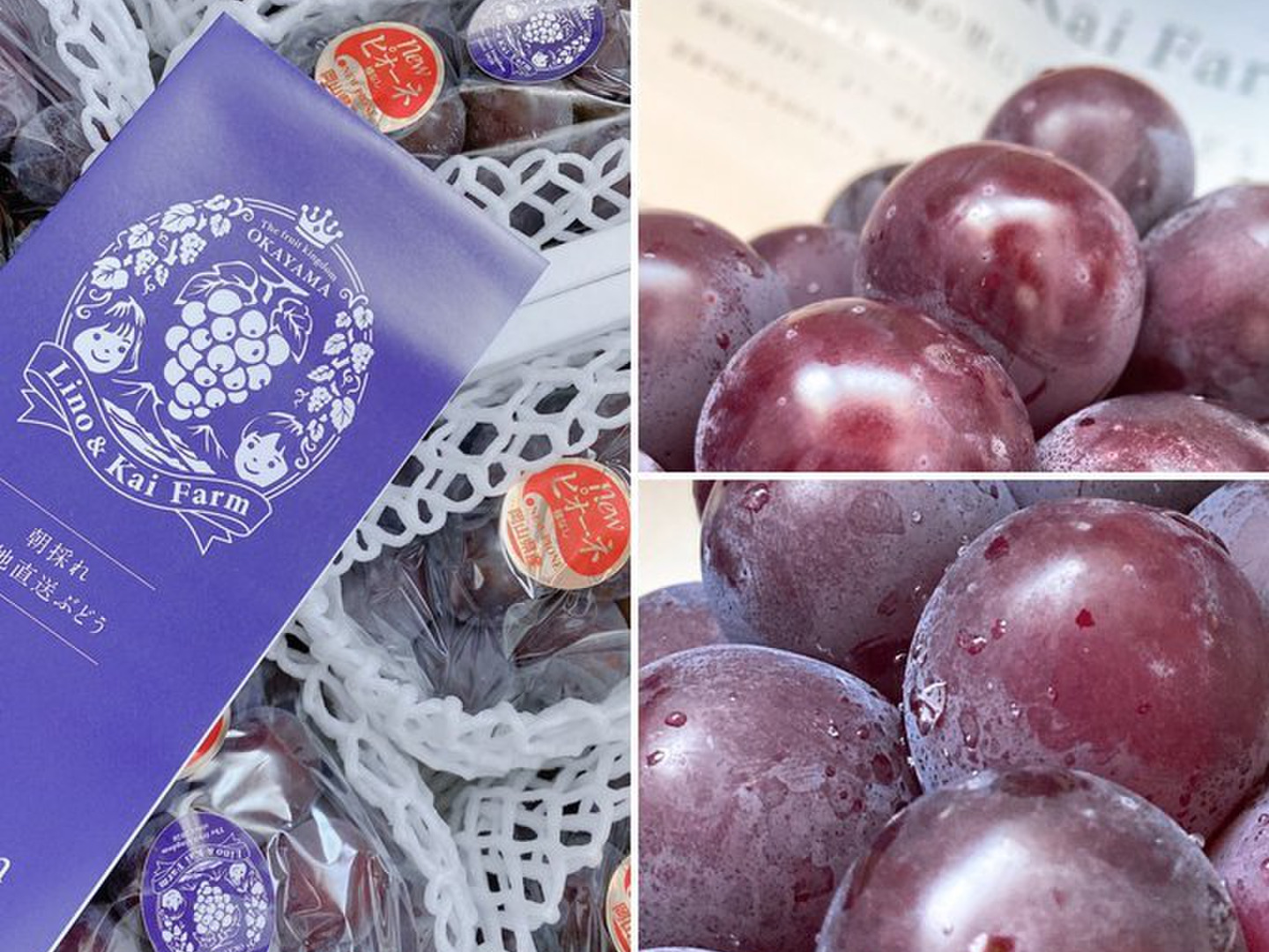 全国1位の生産量を誇る岡山の『ニューピオーネ』・・・ピオーネといえば、果物王国と呼ばれる岡山の果物の中でも「三大フルーツ」と呼ばれる名産品。そのみずみずしい黒い果実は、上品な甘みと心地よい爽やかな酸味を兼ね備えた超一級品です。