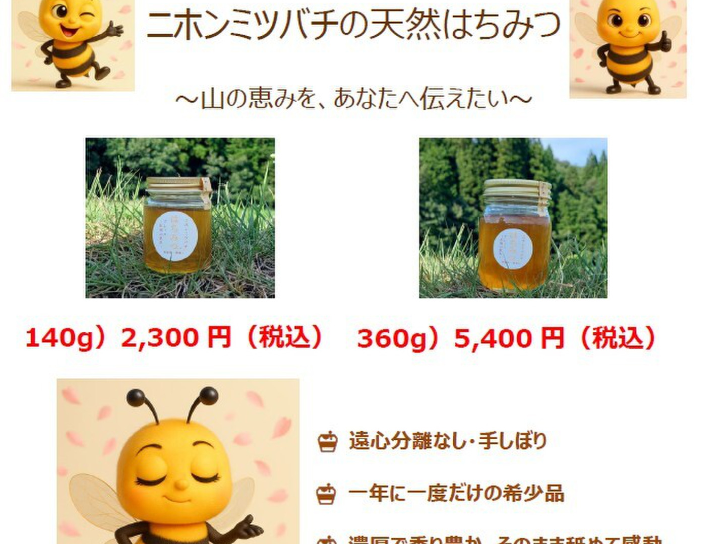 【伝えたい味】自然入居🐝ニホンミツバチの天然はちみつ(非加熱・手しぼり/360g)🍯