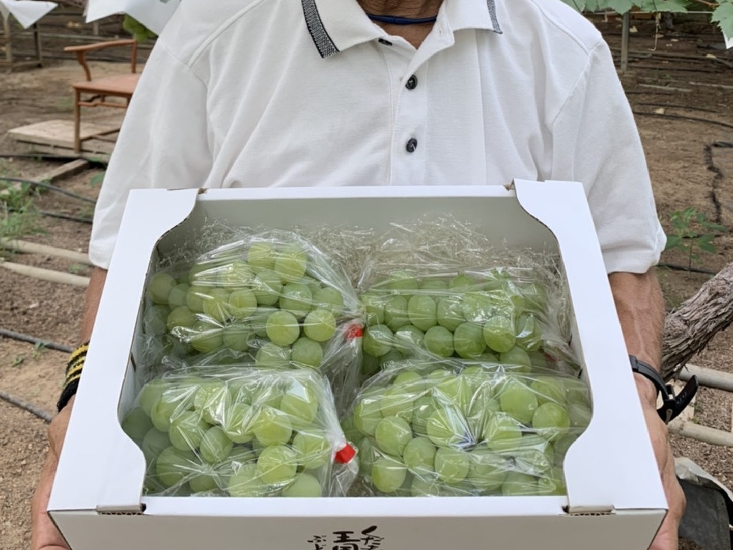 ※注 2枚目の写真にはありませんが、1枚目の写真のようにブドウにはステッカーを貼ってお届けします。