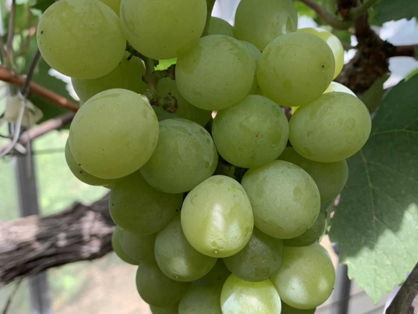 岡山県では130年ほど前から栽培されている高級品種です。キレイな翡翠色の果実は果物の宝石と呼ばれています。種ありの品種の栽培過程は種無しより手間暇がかかります。
