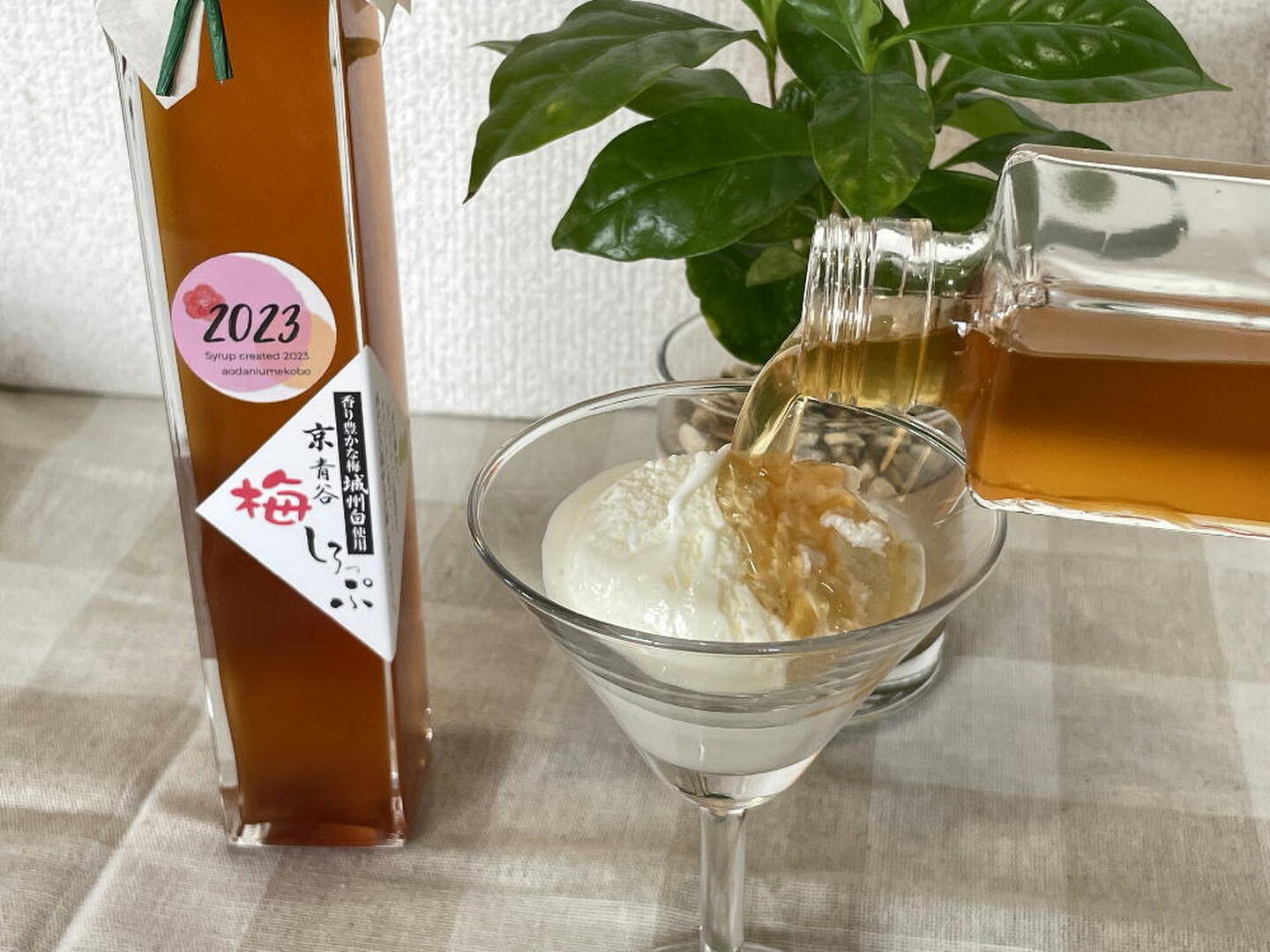 城陽市特産の梅、城州白の香りと芳醇なおいしさの梅シロップ。