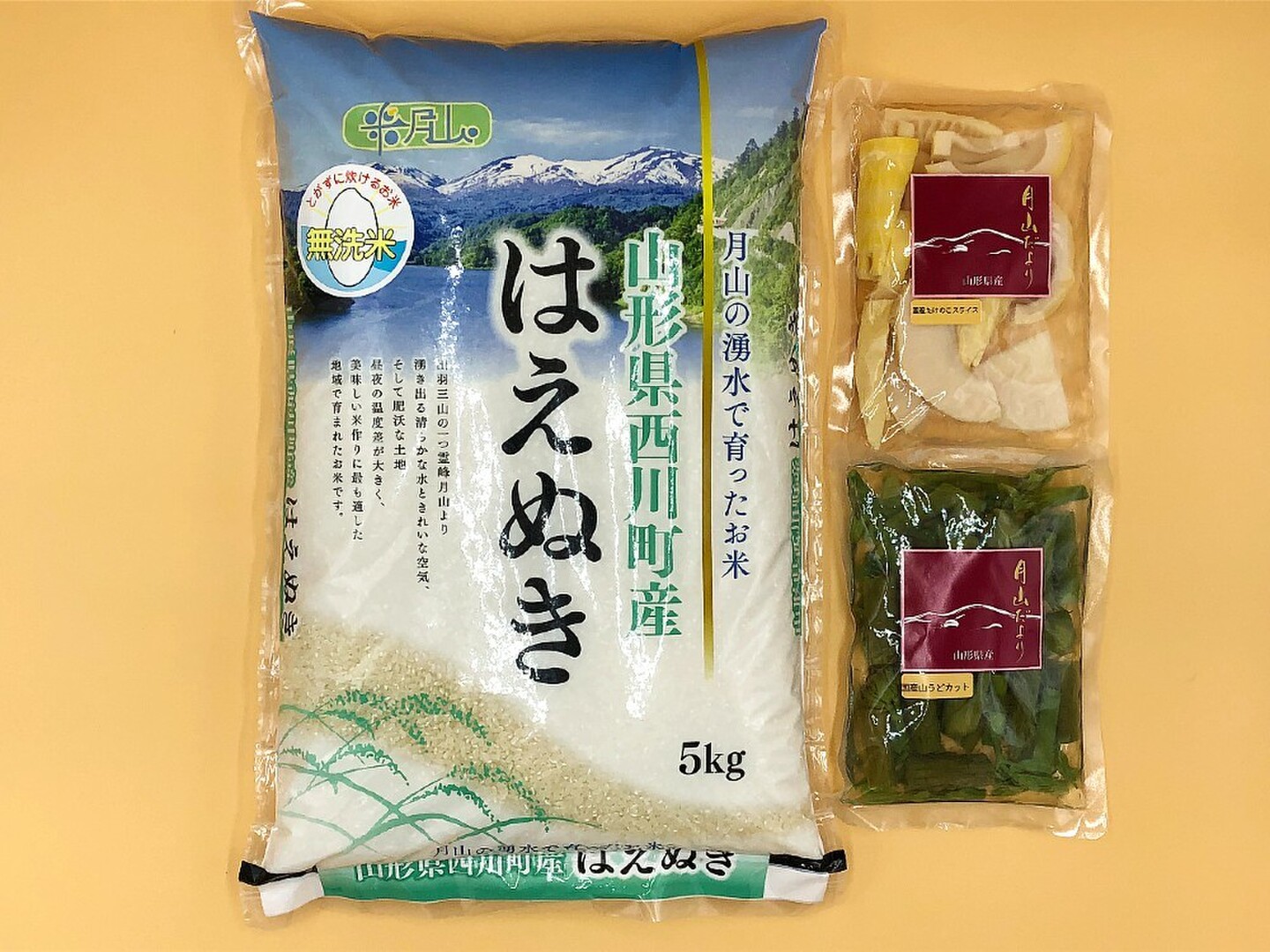 【山形県産 お米 はえぬき】精米 無洗米 A米 5kg 2021年産 新米&【たけのこ(孟宗竹)スライス&天然うど水煮】150g各1袋セット
