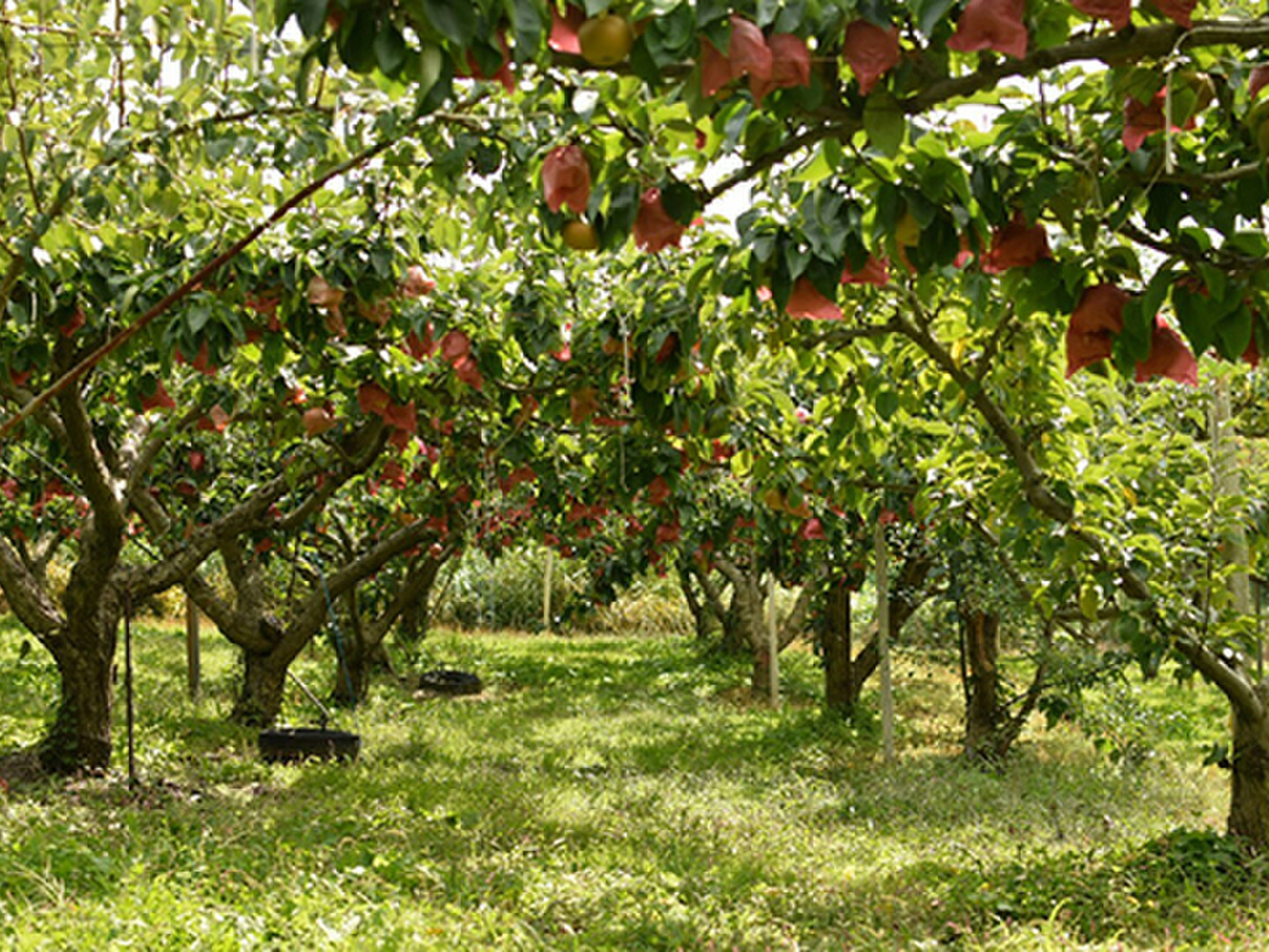 また、私たちが生産する果実は、見た目だけでなく、何よりも味にこだわっています。苦味やえぐみの原因となる窒素肥料は、化学肥料や有機肥料に関わらず、慣行基準よりも少なく抑えています。その結果、完熟し、豊かな風味を持つ美味しい果物をお届けしています。