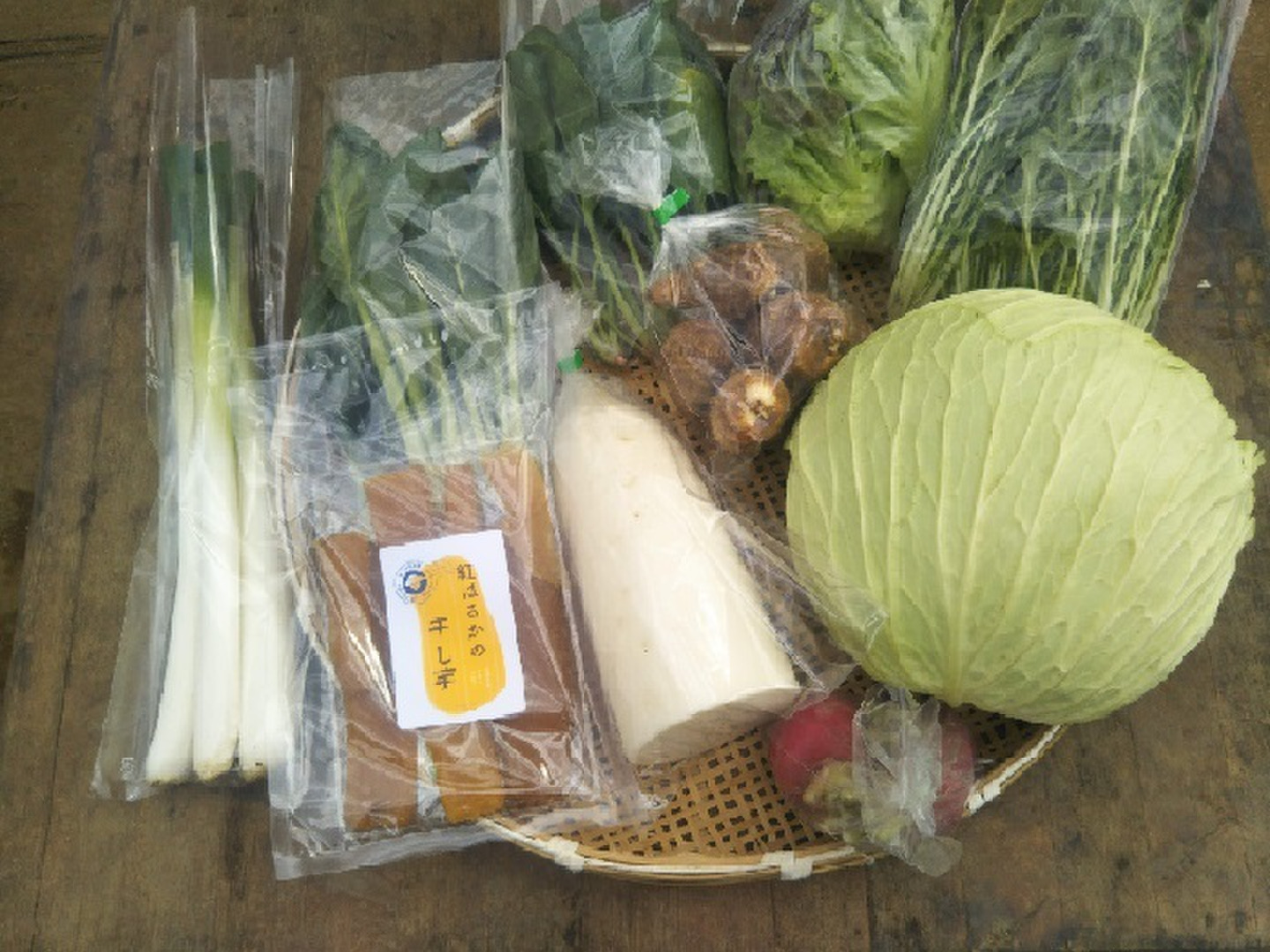 | 内容 | 旬の野菜8品目(例:12月下旬~干し芋、白菜、キャベツ、ネギ、小松菜、水菜、じゃがいも、里芋、さつまいも、ニンジン、ブロッコリー など) | ||||||