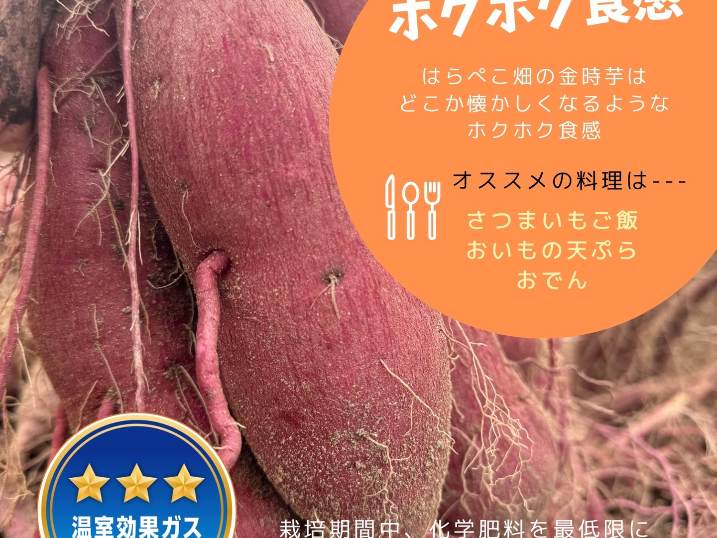 魚系の有機肥料を使うことで、サツマイモ本来の甘さを引き出しました。