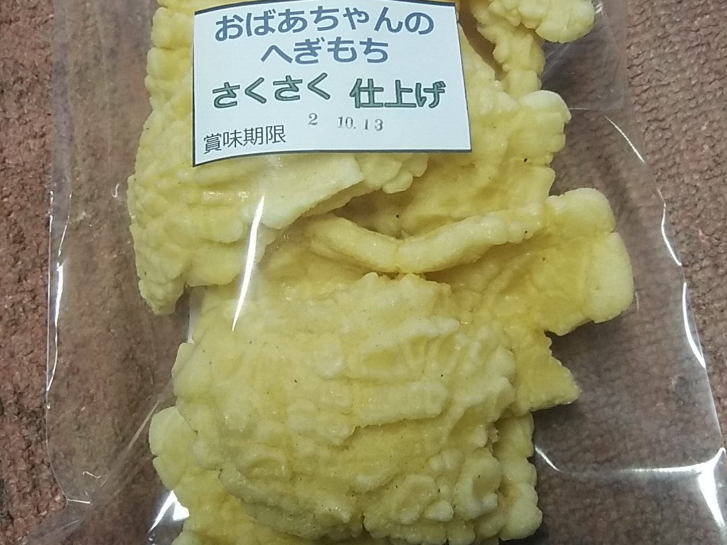 100年以上前から、冬の保存食としてもち米を油で揚げてつくる手作りおやつです。餅を薄くはがすことをこの地方では『餅をへぐ』と言います。それを油で揚げてつくるおかきを『へぎもち』と呼ばれどの家庭でもつくり親しまれておりましたが、今はほとんど作っておりません。この伝統のおかきを残していこうと揚げ方の工夫をして独自の製法で30年前から産直やスーパーで販売し地元では人気のおかきです!