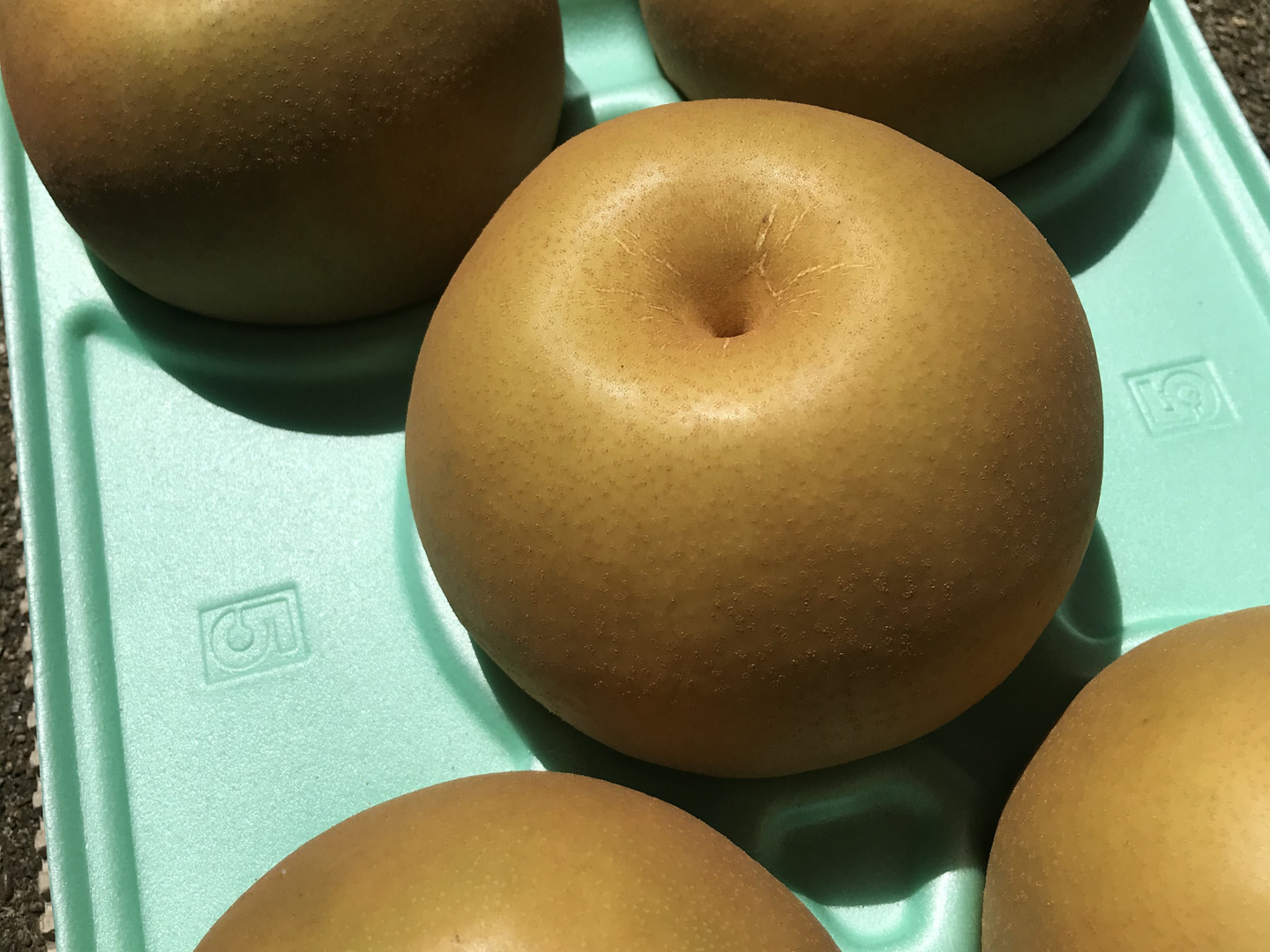 新高は大きくなる梨で、甘くてジューシー、果肉はシャキッとしています。他の品種より日持ちします。