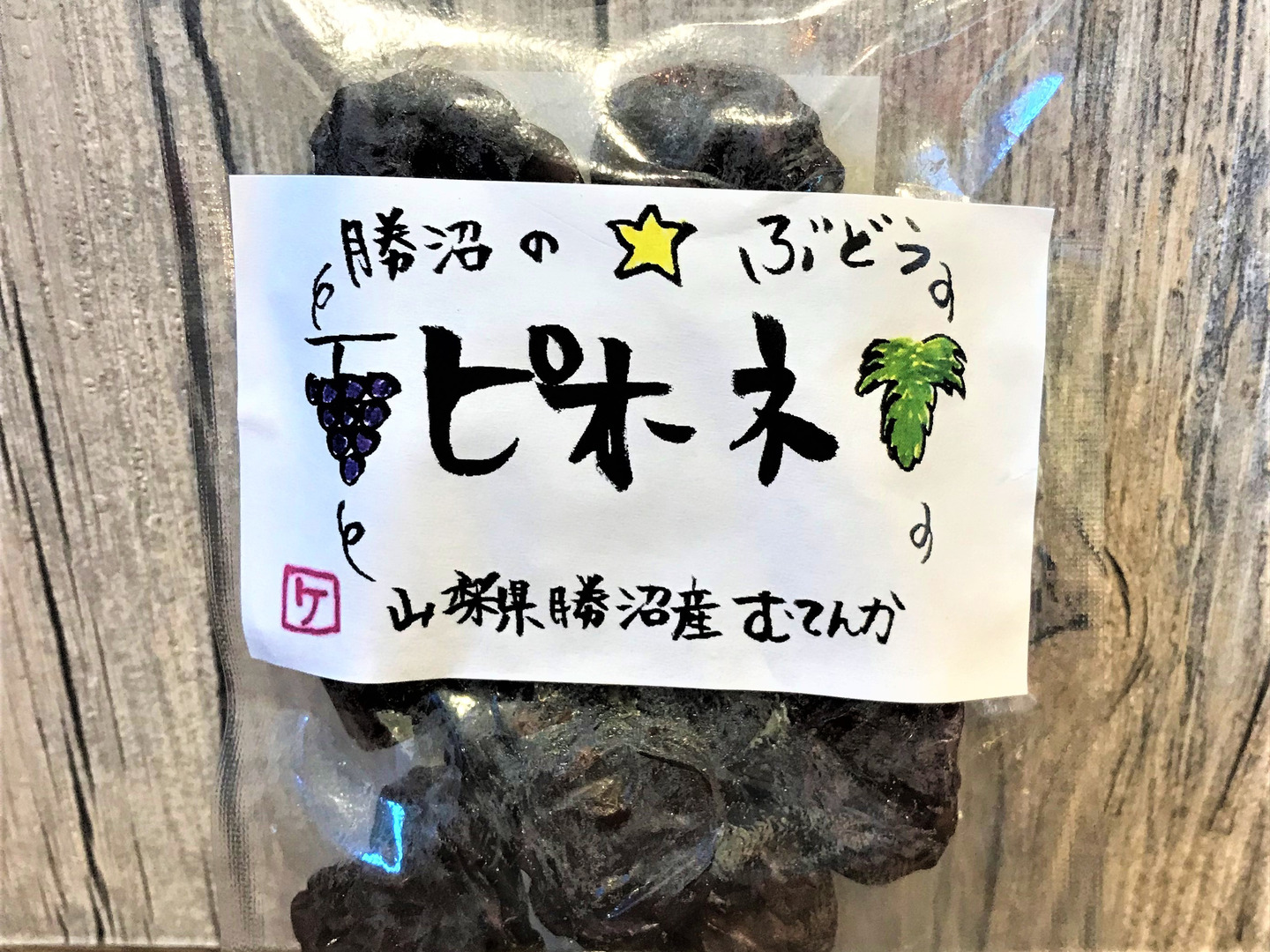 ケアフィットファームの葡萄畑で栽培している「ピオーネ」を使っている干し葡萄です。