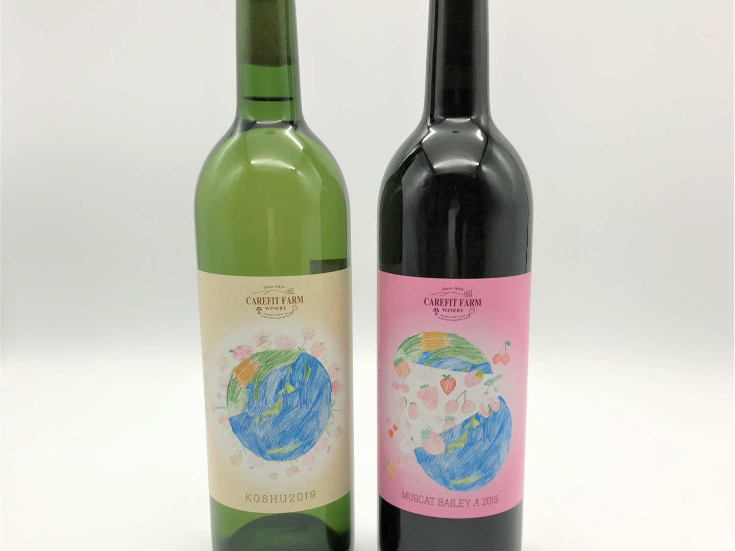 2019年に勝沼で栽培したマスカットベーリーAと甲州でつくった赤ワインと白ワイン各1本のセットです。