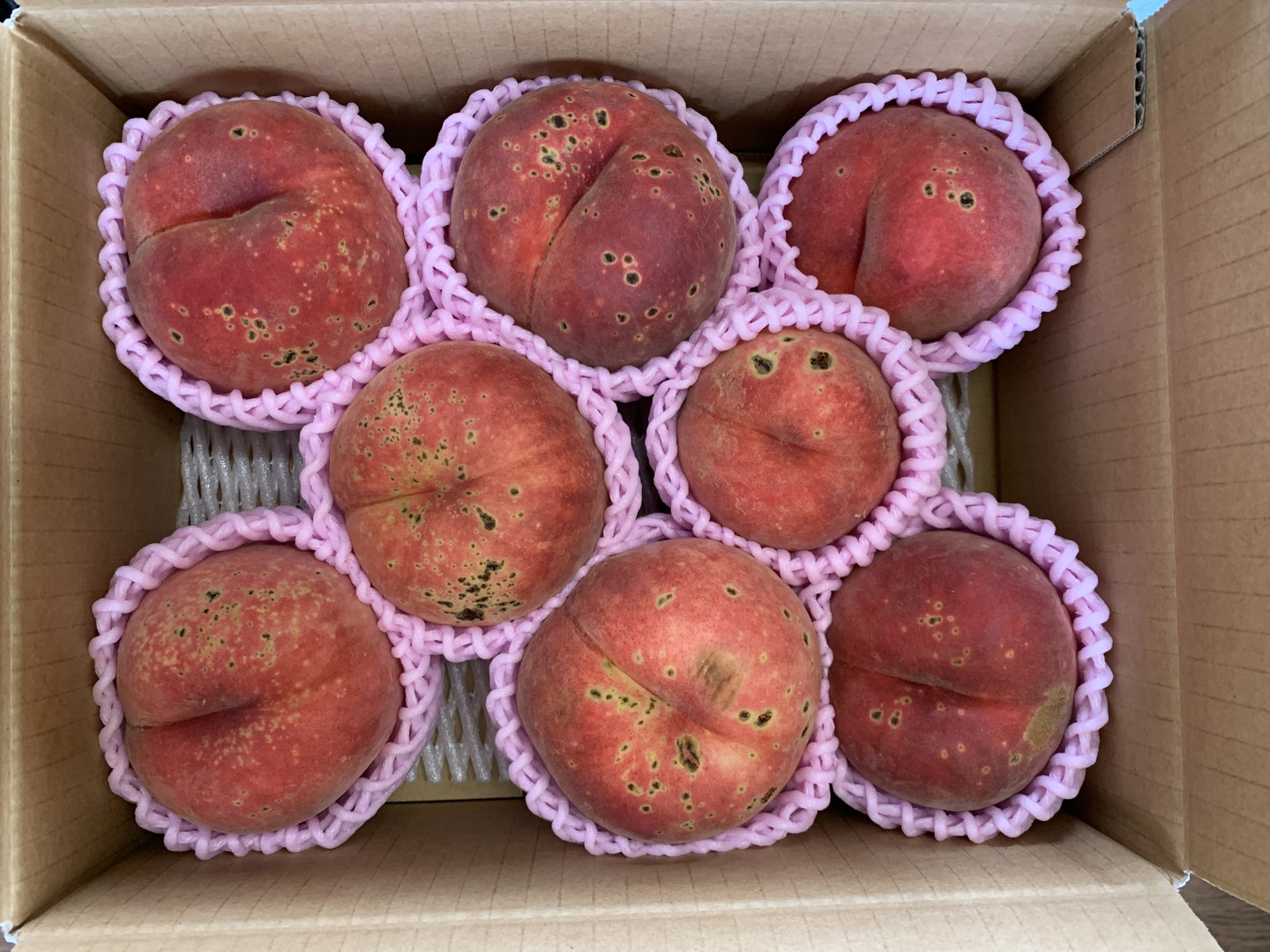 ・万全な状態で出荷しておりますが、果実の性質上、輸送中の振動等で若干の表面のこすれや果汁漏れがある場合がございます。