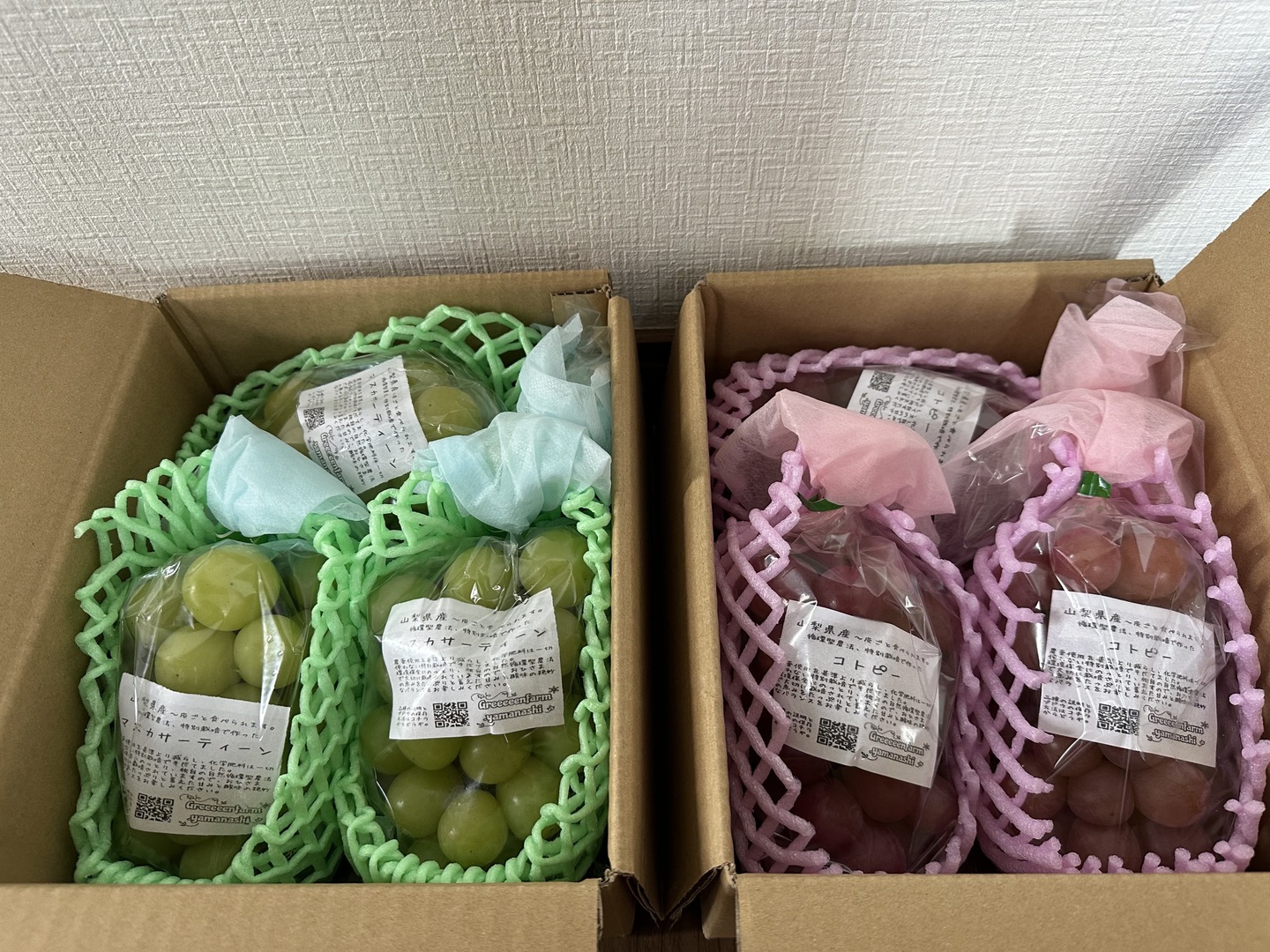 粒がかすれたような状態になっているものもありますが、それらは完熟MAXの証なので安心してお召し上がりください。