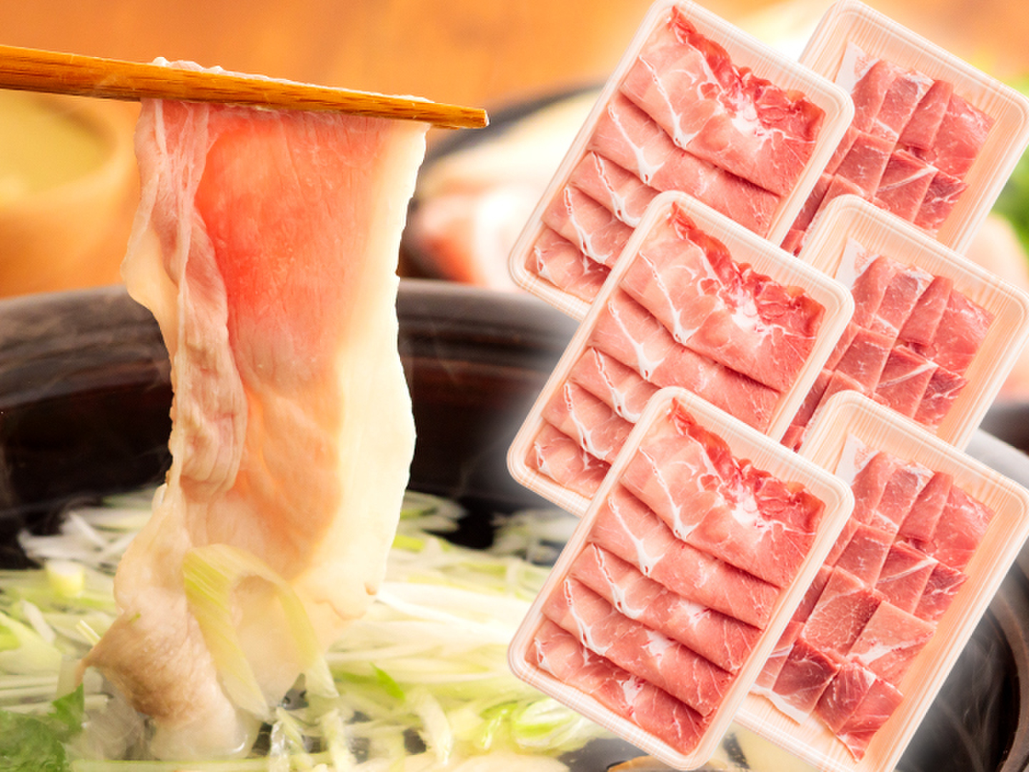 健康的な豚肉各部位ごとにパックで小分けしてお送りします。モモ焼肉 200g × 3、モモスライス 200g × 3、総量1.2kg
