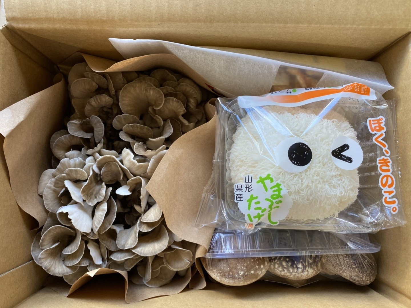 とび色舞茸1株(約400g) やまぶしたけ(約90g)×2個、乾燥やまぶしたけ15g、金の椎茸(菌床)(100g)