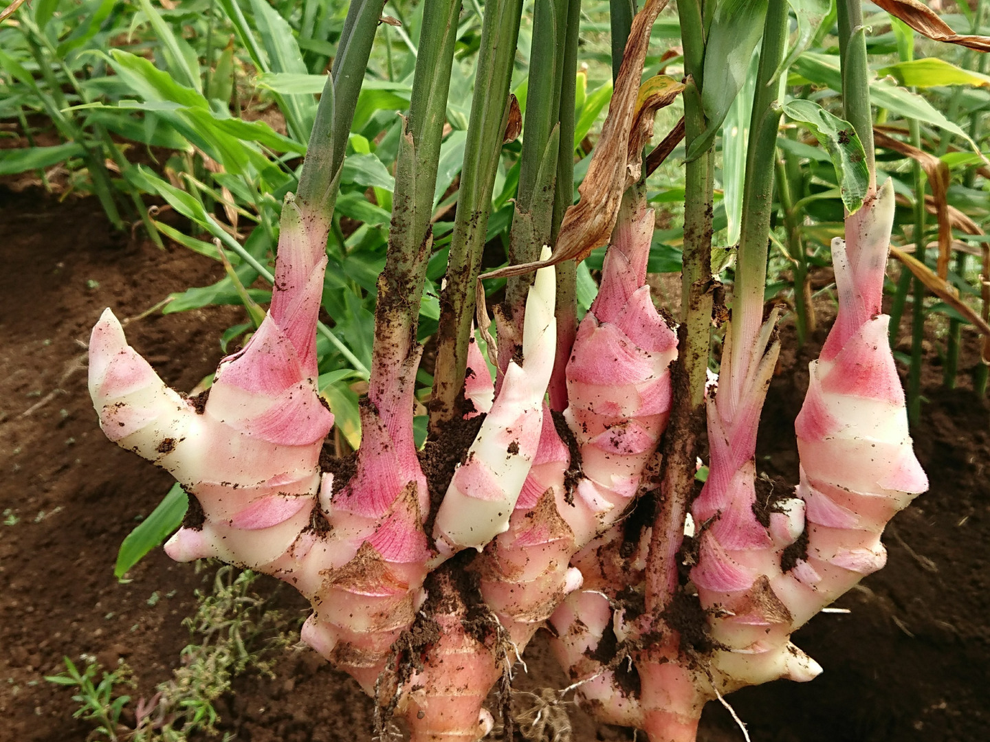 農薬不使用、化学肥料不使用、植物性の良質な肥料のみ使用した高品質の株ごと収穫した新生姜です。