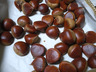 鬼皮、渋皮を剥いた栗を、水400、砂糖100gを入れて、弱火で20分煮る。一晩おく。砂糖100gを追加。20分煮る,一晩おく。