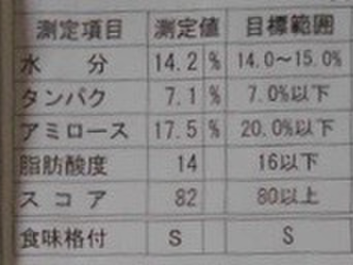 このお米と同じ畑で作ったお米の食味格付け''Sランク''