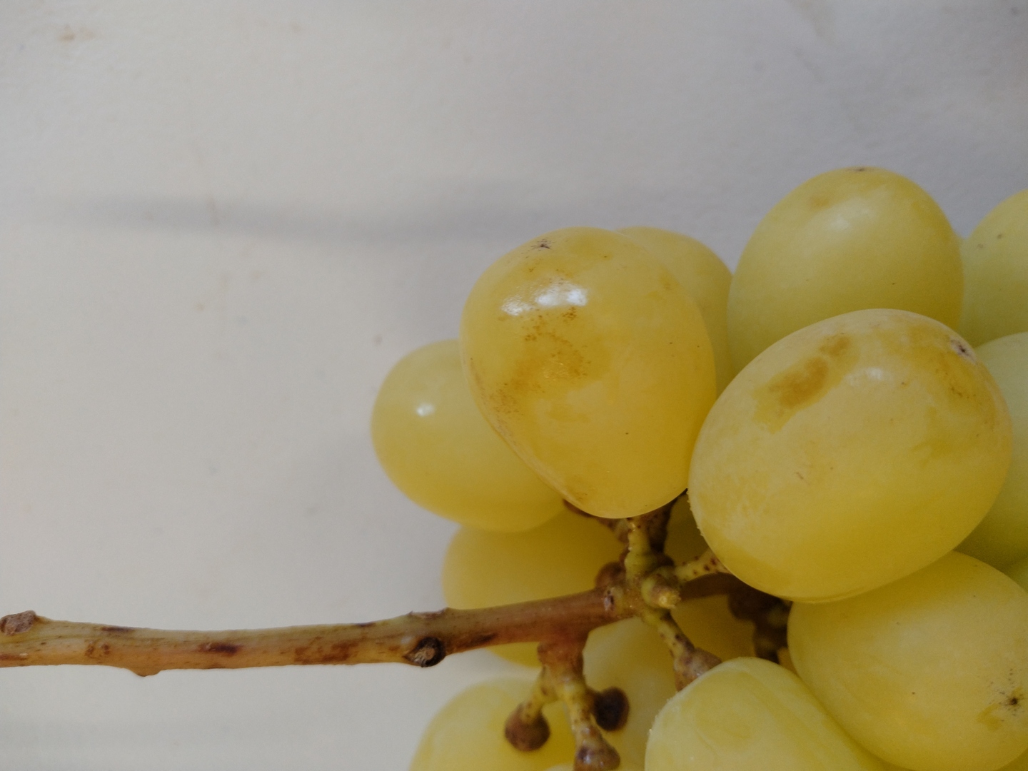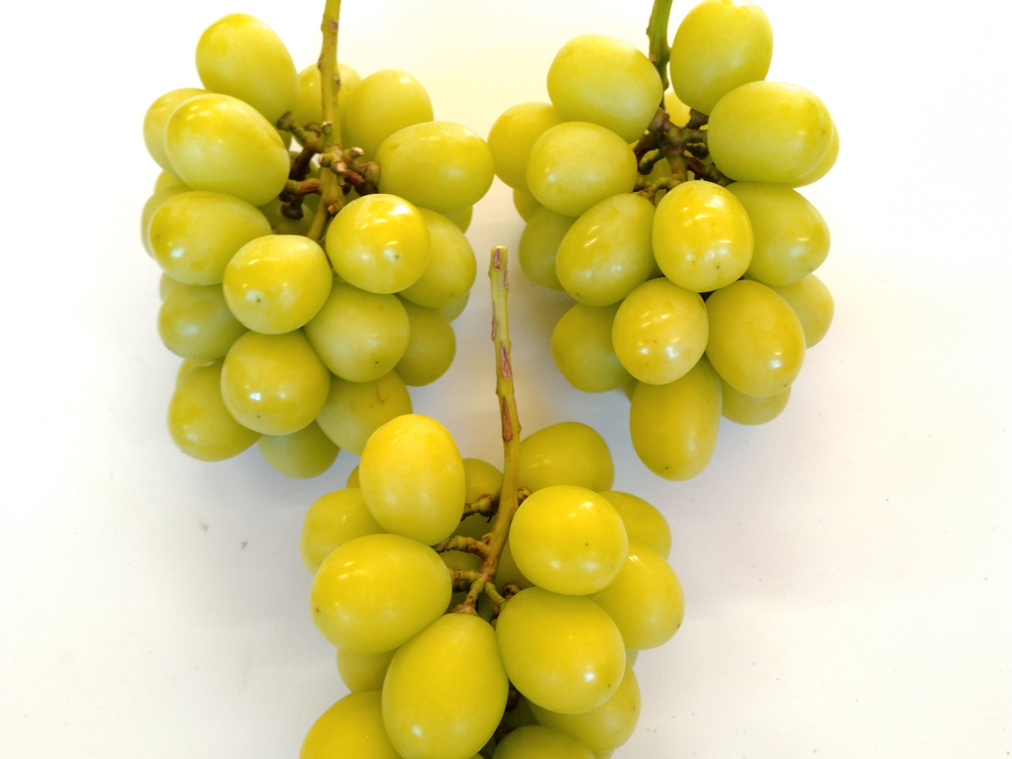 タイガ農園のシャインマスカットの色は、房にもよりますが緑よりも黄緑に近い色をしています。また、粒も驚くほど大きくはありません。