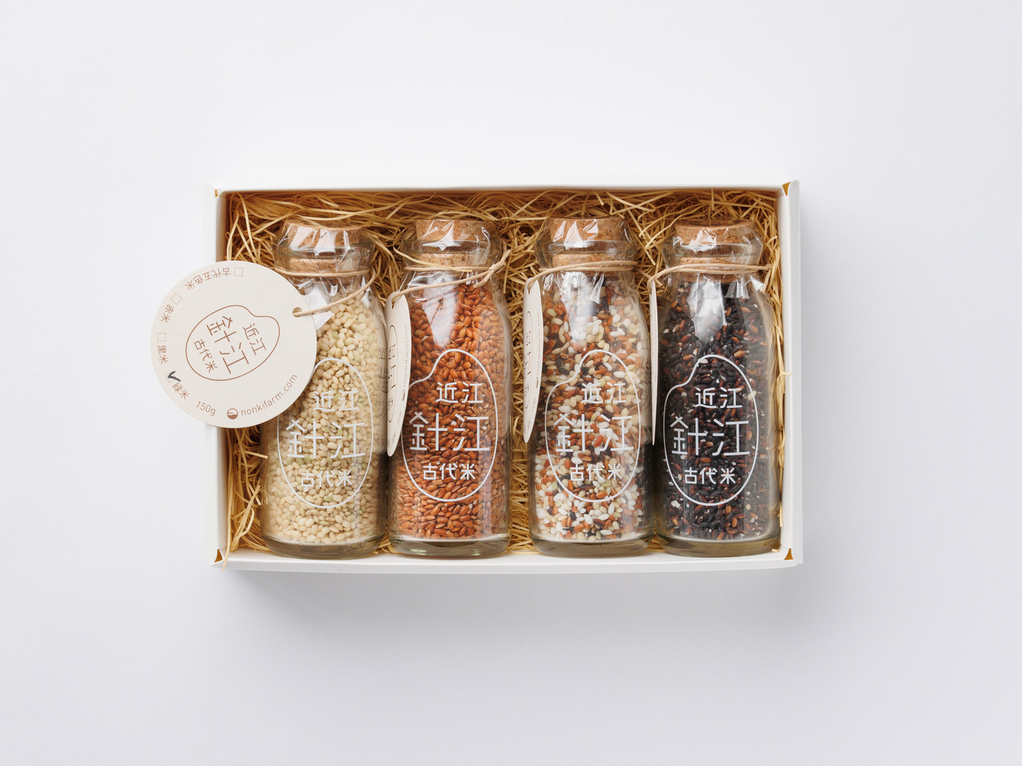 有機栽培の古代米(もち米)の「五色米」「黒米」「赤米」「緑米」四本入りのギフトセットです。
