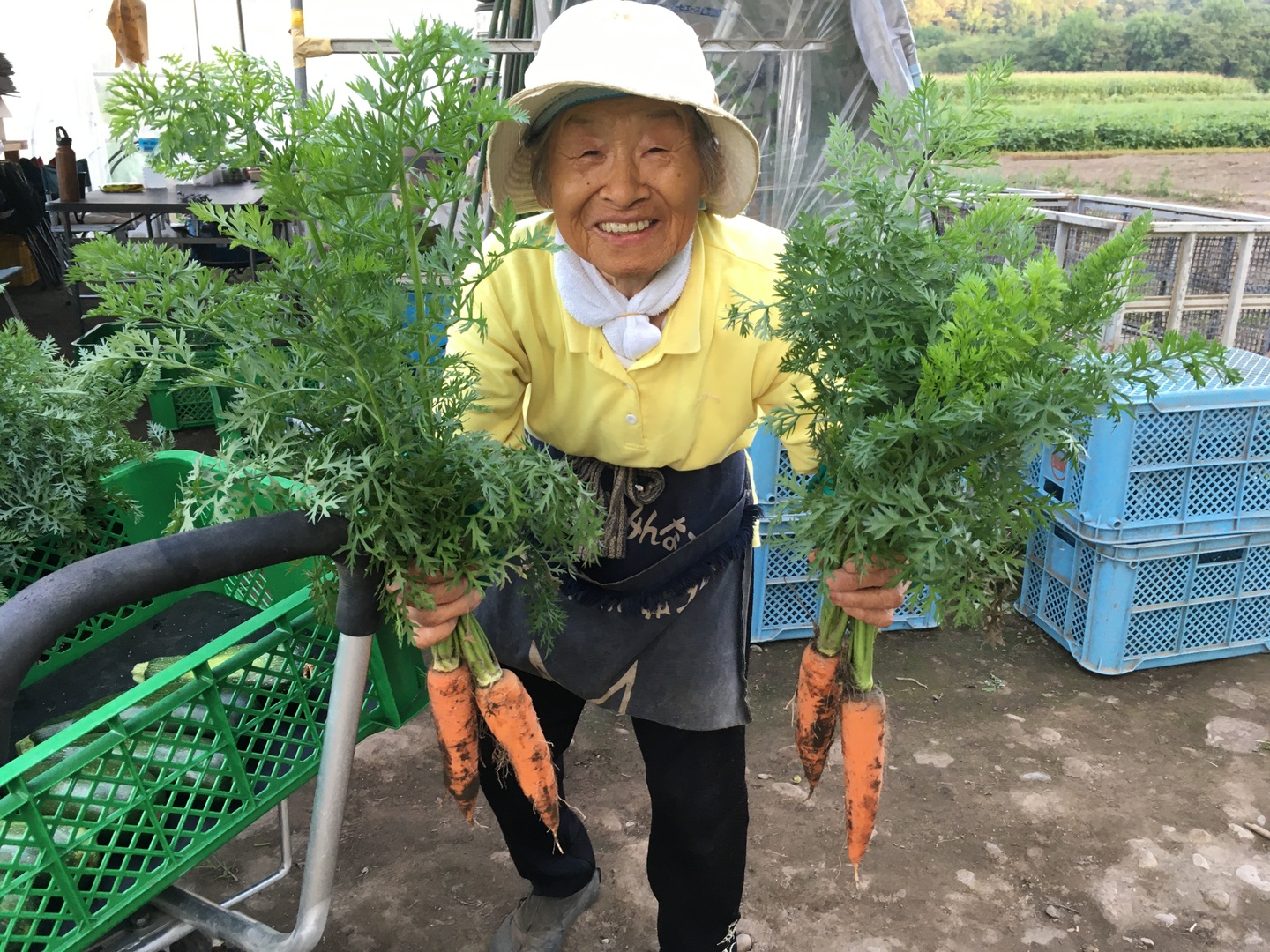 お客様から、『この人参はミネラルとビタミンが豊富で、特に血液や血管に作用して、血液をサラサラにしてめぐりを良くし、血管を強くしなやかにしてくれるので、心筋梗塞や脳梗塞の予防にとても効果的ですよ!』と、育てた本人も驚きの体験談をしてくださいます。