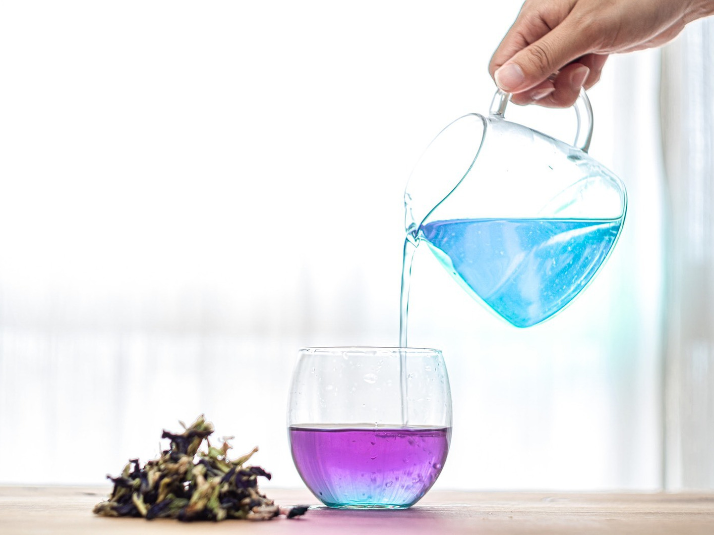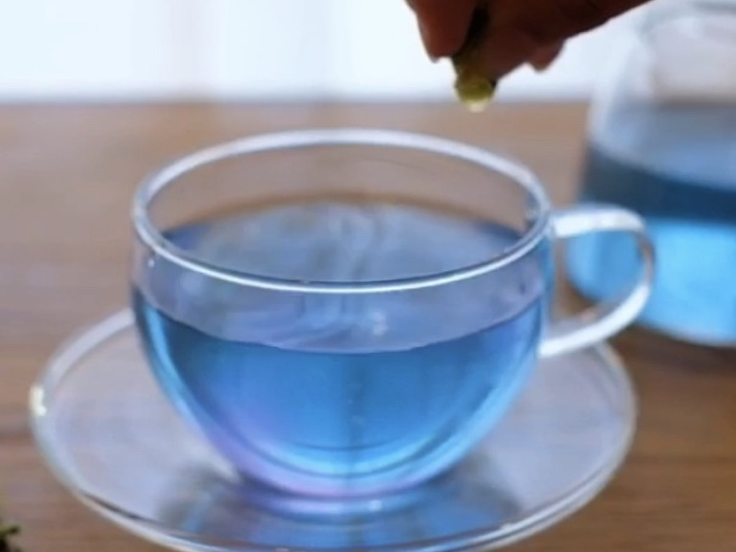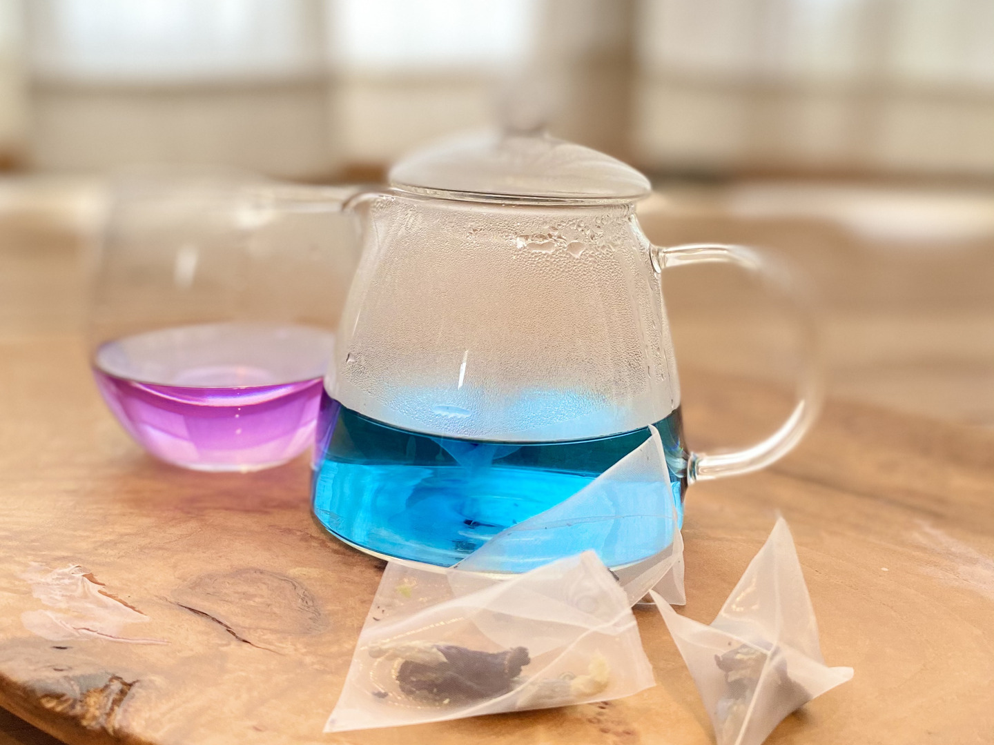 バタフライピーティーは無味無臭なので飲みやすく、レモンを入れると味も色も変わり二度楽しめるお茶。