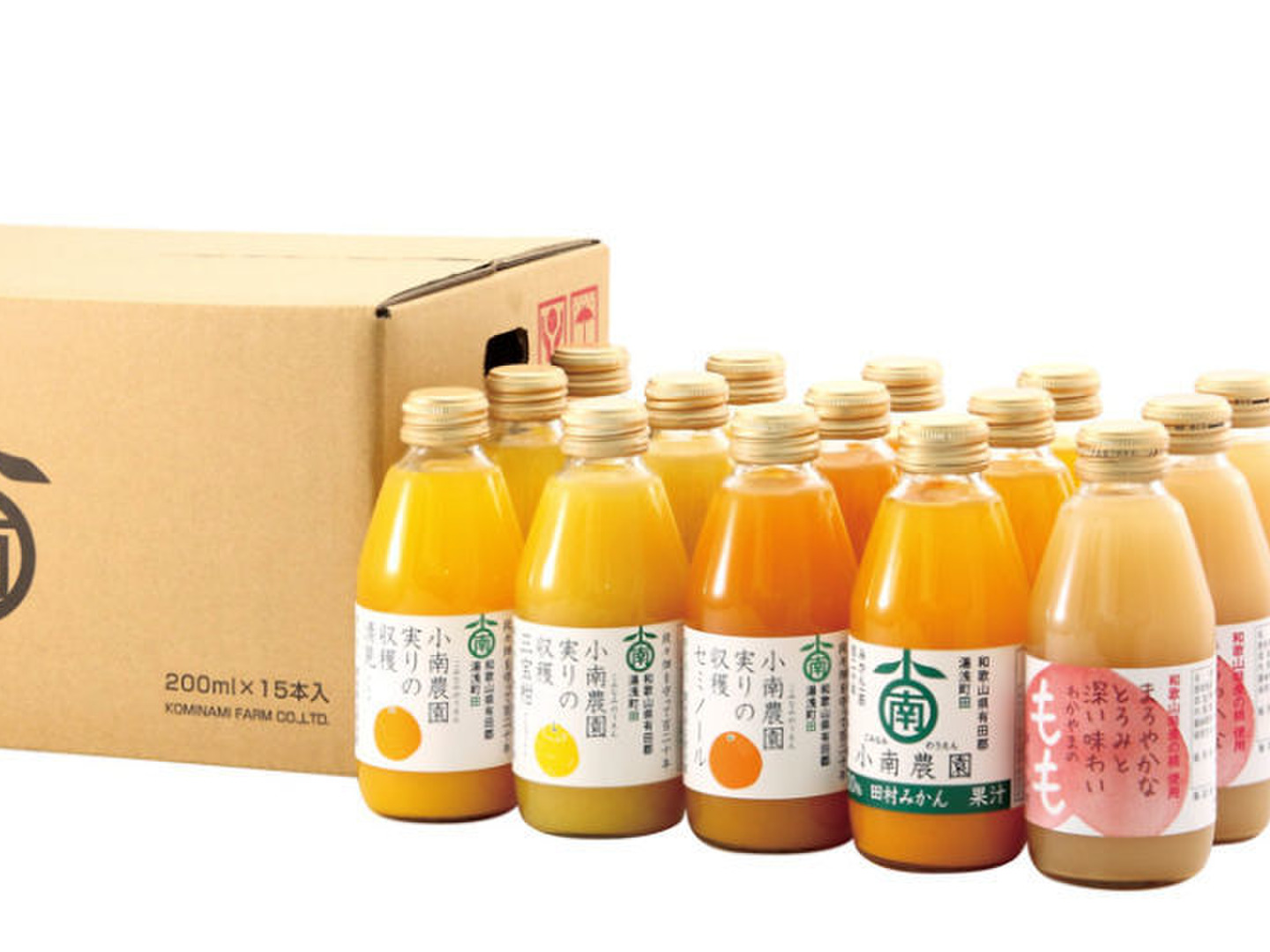 和歌山県産5種のフルーツジュース15本セット (田村みかんジュース180ml、清見ジュース180ml、三宝柑ジュース180ml、カラマンダリンジュース180ml、白桃ドリンク200ml)