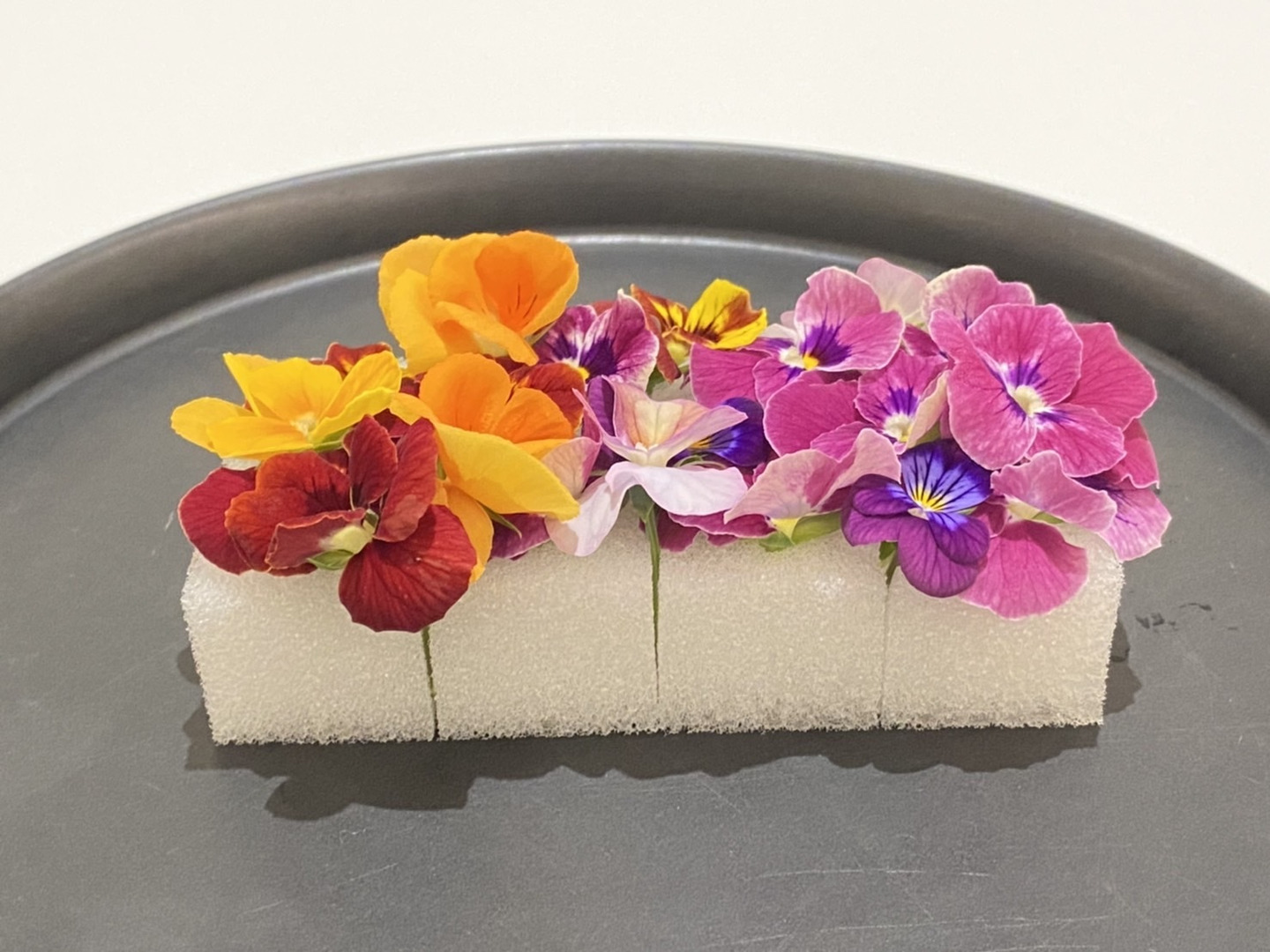 エディブルフラワーとは、食べることを目的に栽培された花のことです。苦みや辛味はなく、ほのかな花の香りが楽しめます。洋菓子のメインとしても、料理の彩りとしても使えます。