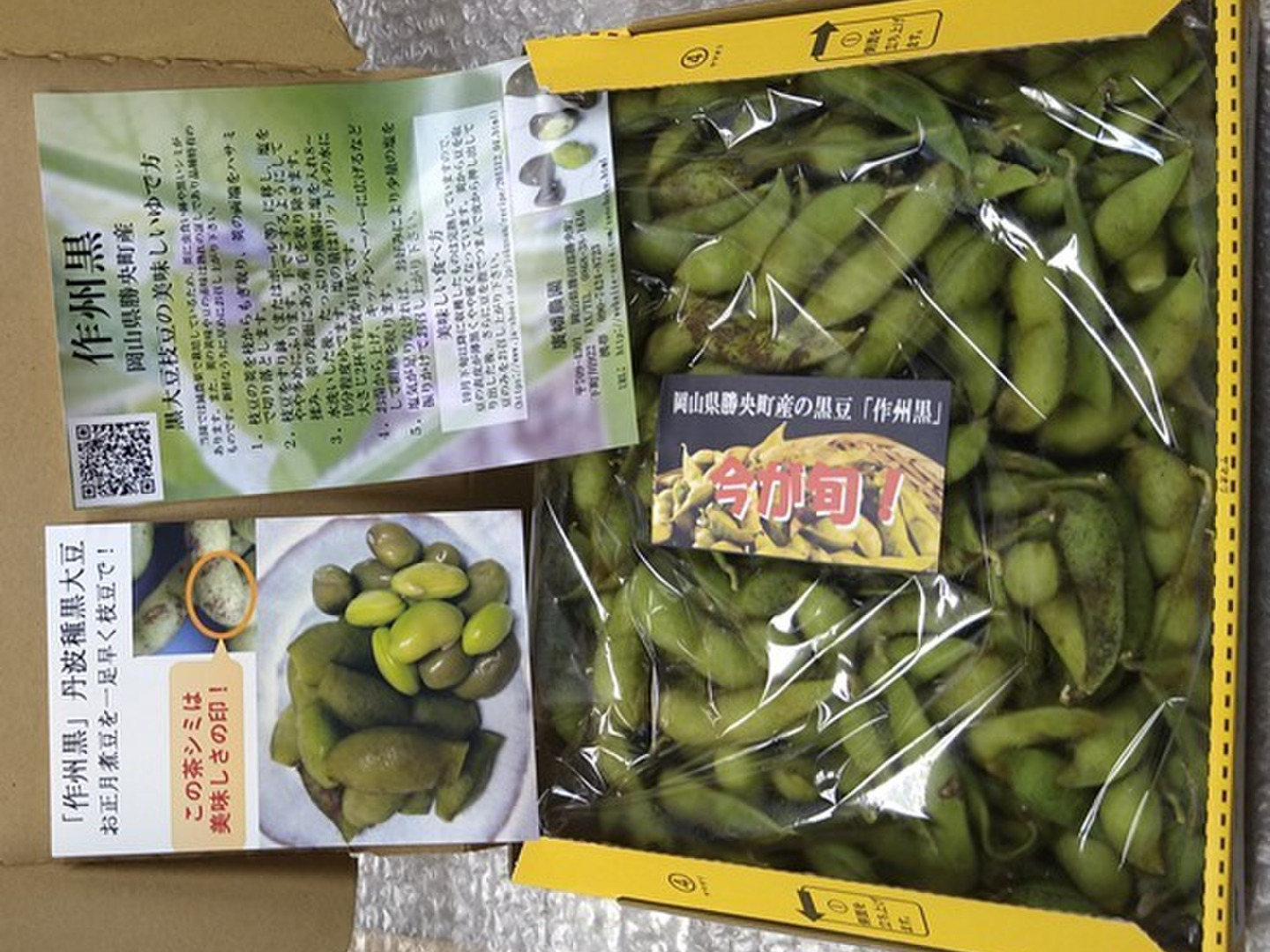 丹波種はお正月の煮豆用に重宝される「丹波黒」と同じ高級品種ですが、当圃場は岡山県美作地方にあり、この地の別名をとって「作州黒」というブランドを築いています。