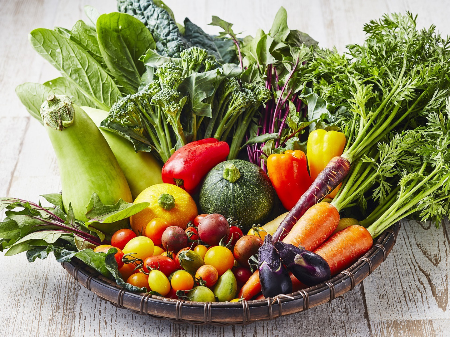 以下のような季節のお野菜の中から、その日に収穫できたお野菜を7〜8品目お届けします。