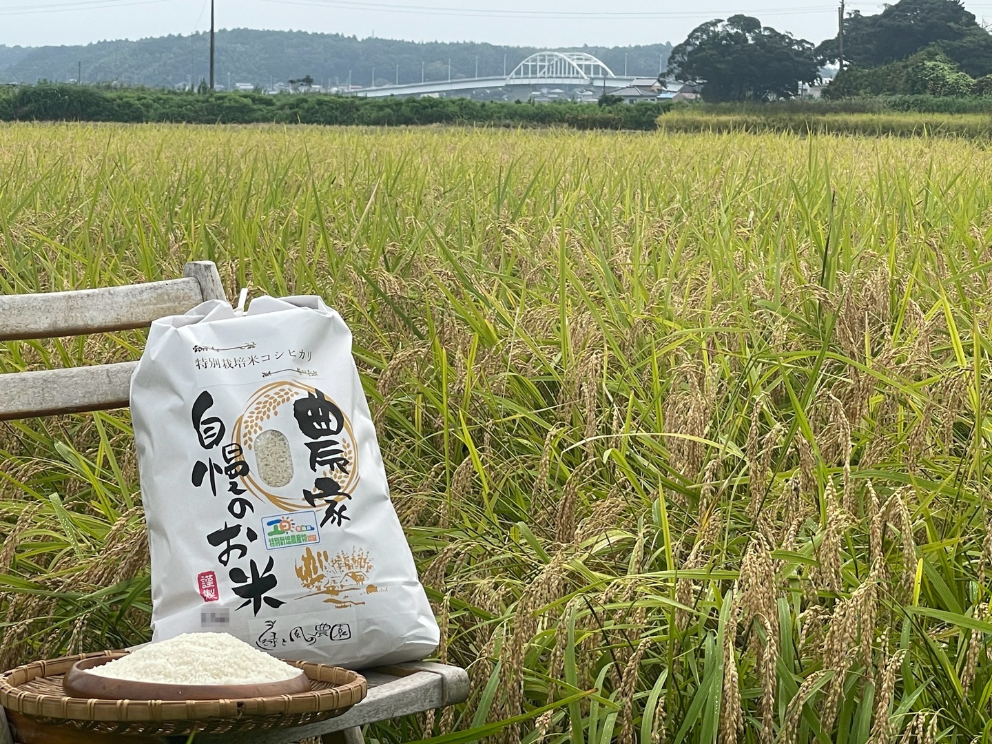 湖畔の田んぼは東側の北浦(湖)の肥沃な水を導水し、広大な田園を南風〜北風が吹き抜け、西側の小高い丘が西陽をさえぎり寒暖の差が生まれる地形で肥沃な砂質土で米作りに最適です。