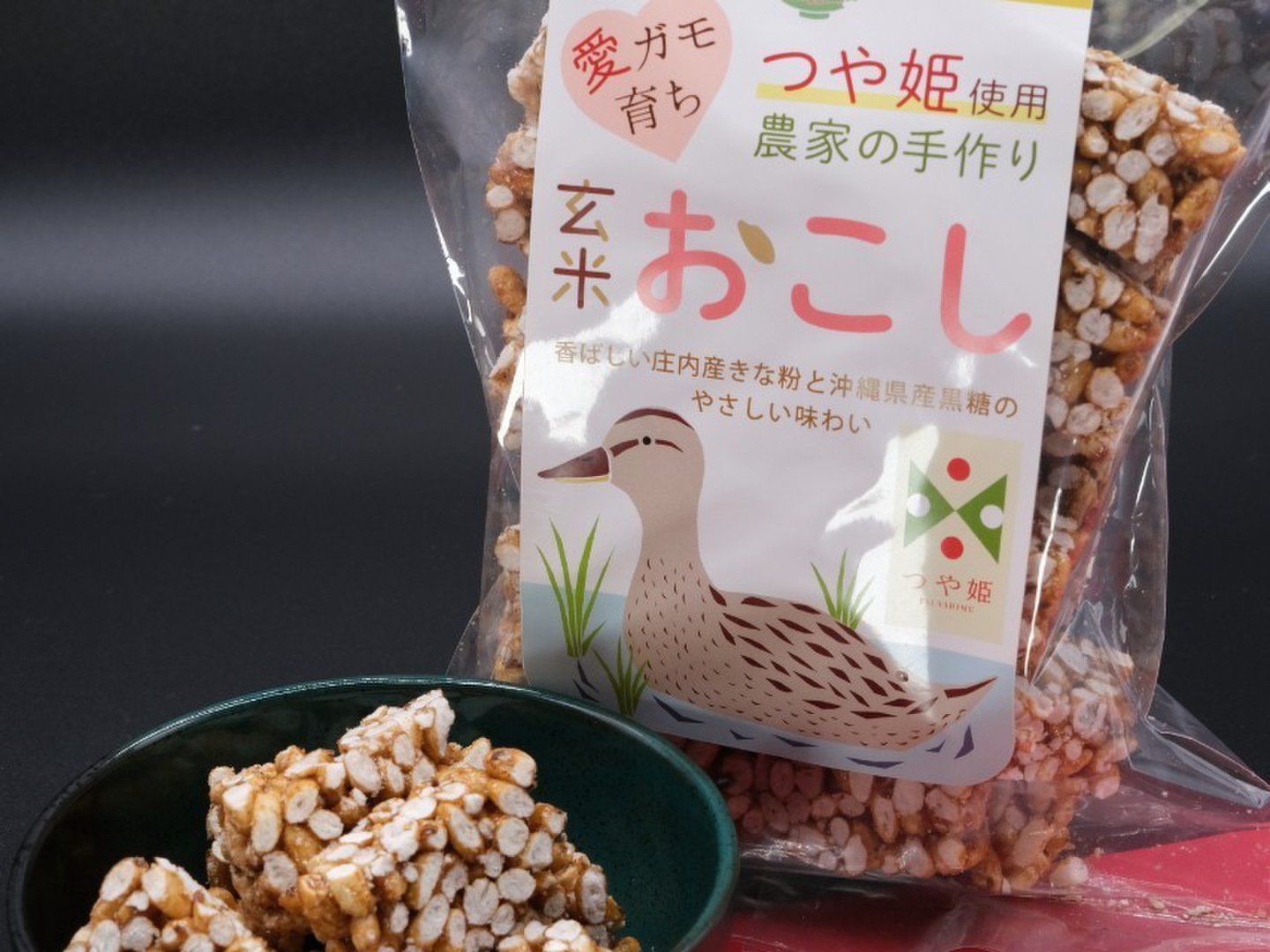 大好評につき、有機JAS認証つや姫の玄米を用いた”玄米おこし”をお付けしております。お米本来の美味しいと絶妙の甘さのお菓子をぜひ、あわせてお召しがりください。