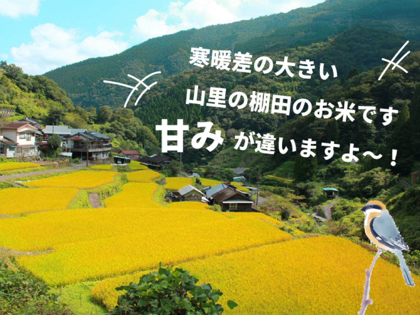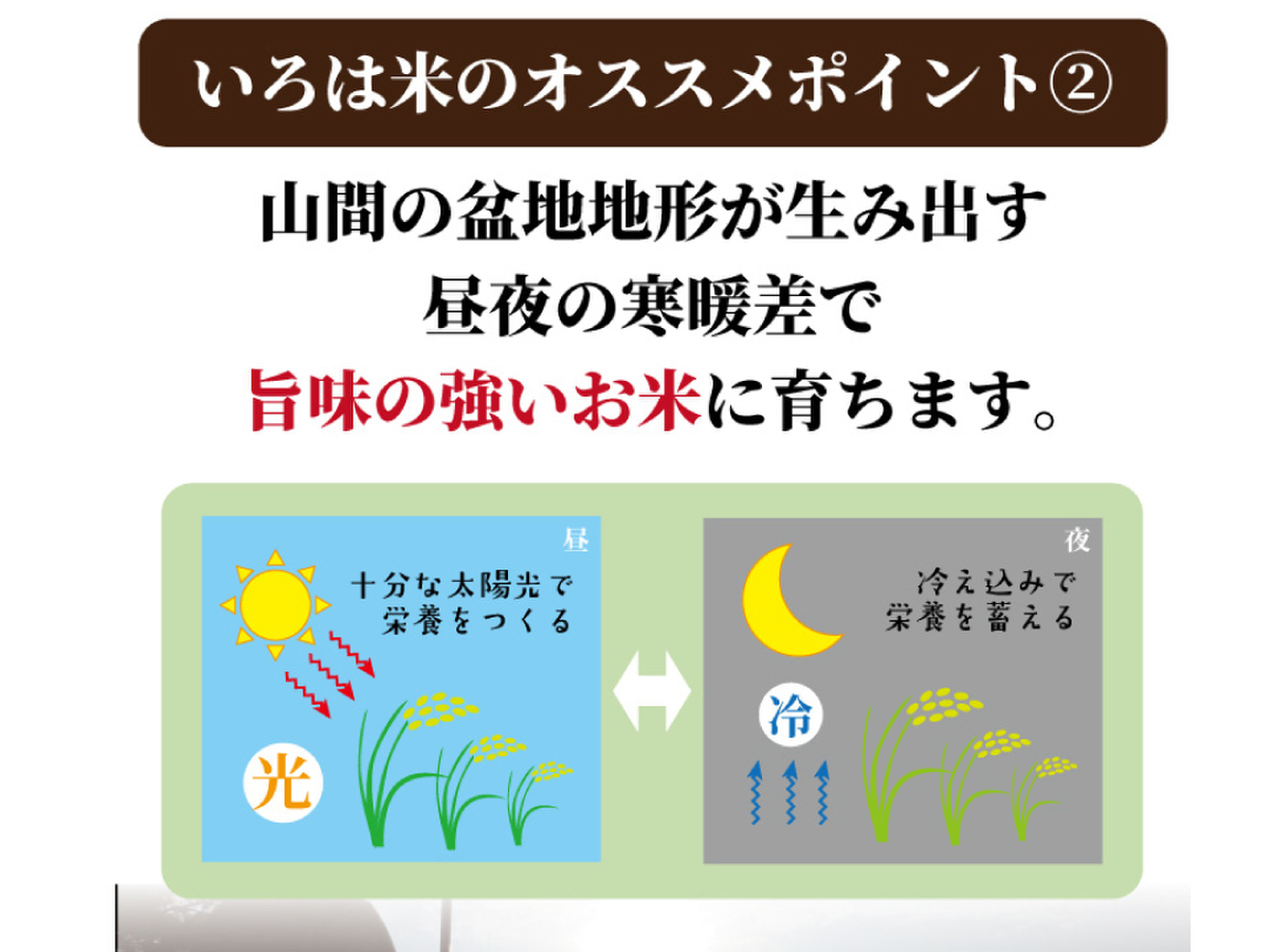 - 山間地特有の昼夜の寒暖差のおかげで旨味の強いお米です!