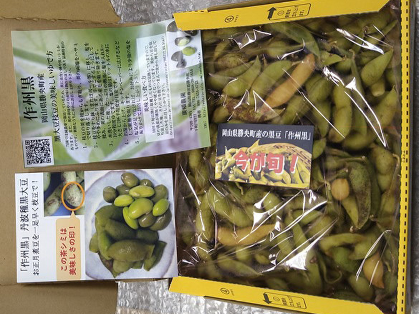 丹波種はお正月の煮豆用に重宝される「丹波黒」と同じ高級品種ですが、当圃場は岡山県美作地方にあり、この地の別名をとって「作州黒」というブランドを築いています。