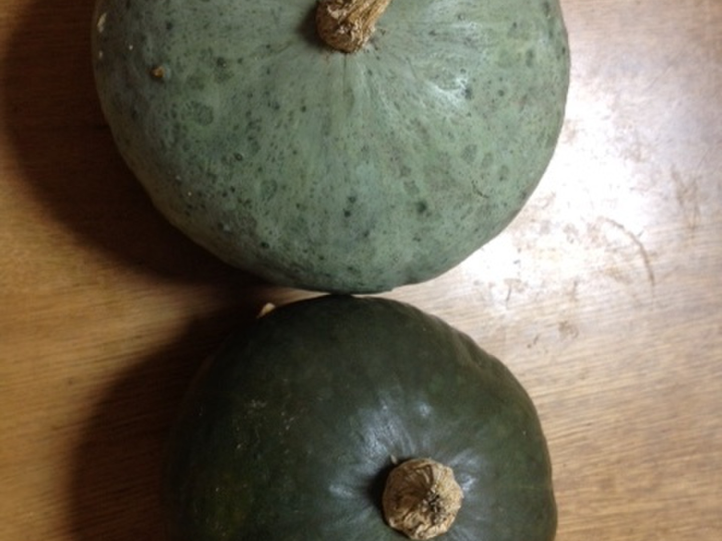 カボチャ雪化粧、ブラックのジョーのコンパクトサイズ各1個、1,8㎏前後。