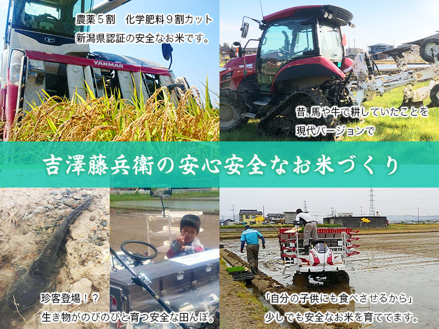 吉澤藤兵衛 新潟県長岡市 14いいね 生産者のこだわり 1 減農薬・減化学肥料栽培 2 「にがり」をまく 3 日本一の米どころ 新潟の美味しいお米をお届け 4 生産者の顔が見える安心安全な特別栽培のお米。