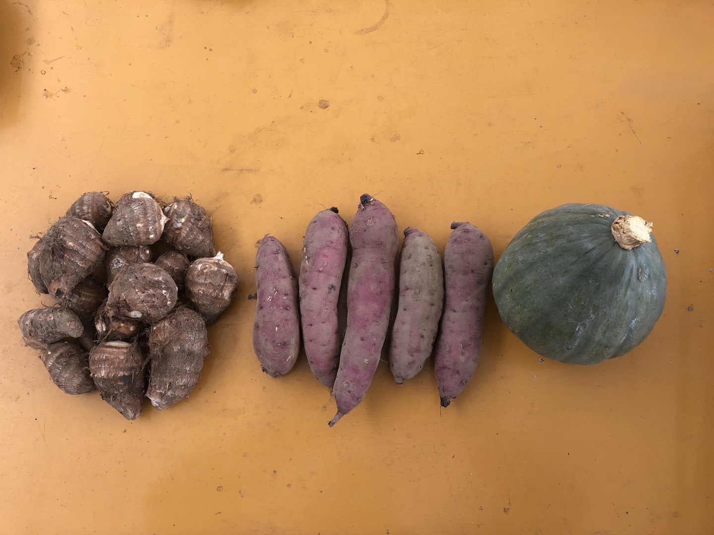 かぼちゃ(かちわり)1kg+里芋(土たれor大野)1kg+さつま芋1kg(紅はるかorあいこまち)。