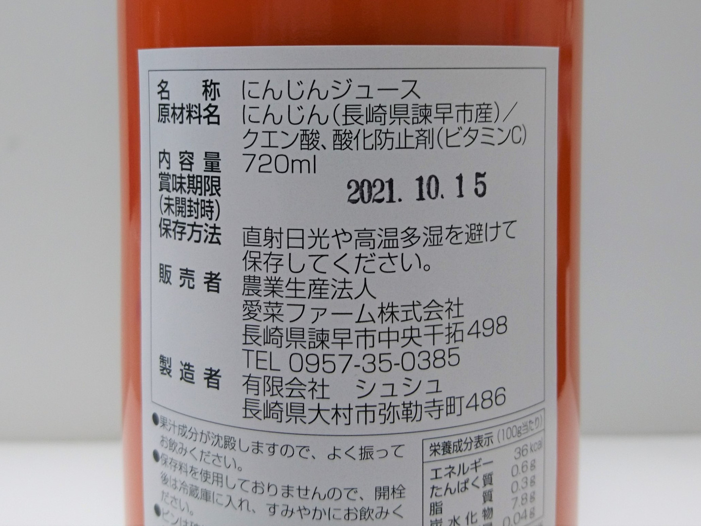 長崎県諫早市産 愛果菜にんじんジュース 内容量720ml 1本 旬の穫れたて野菜付 × 4セット