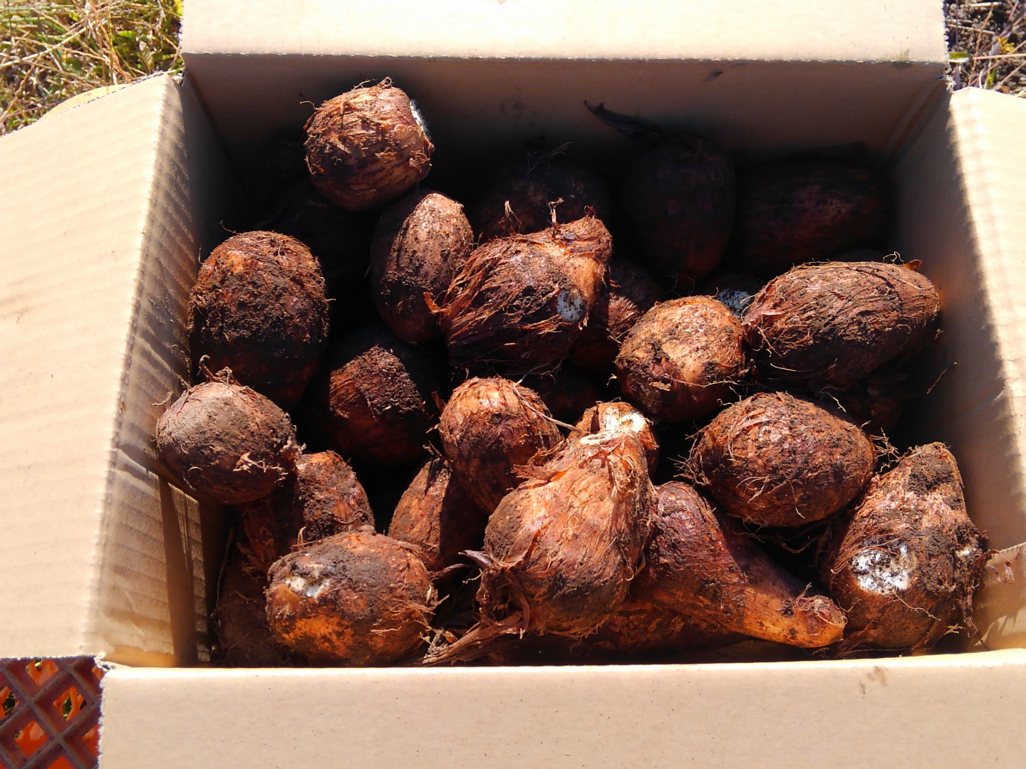 種芋を貯蔵し、毎年植え付けています。品種は土垂れ・ウーハン・女早生などになります。