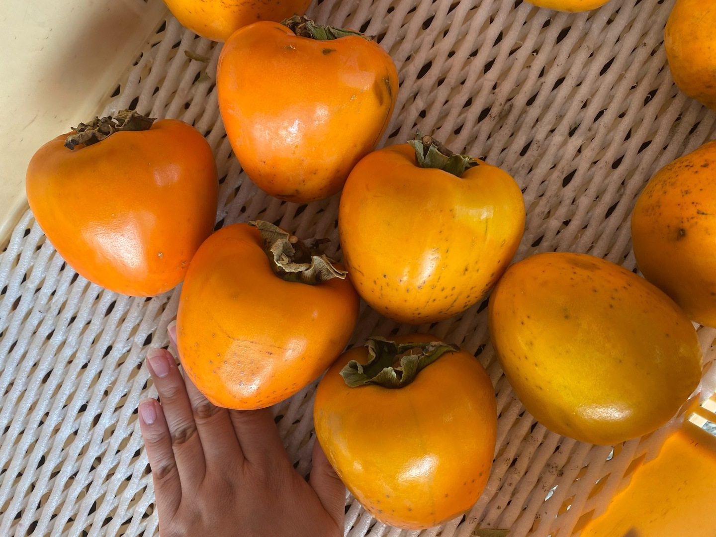 甲州百目柿、ブランド柿を丁寧に手作業で一つ一つ皮むきし、