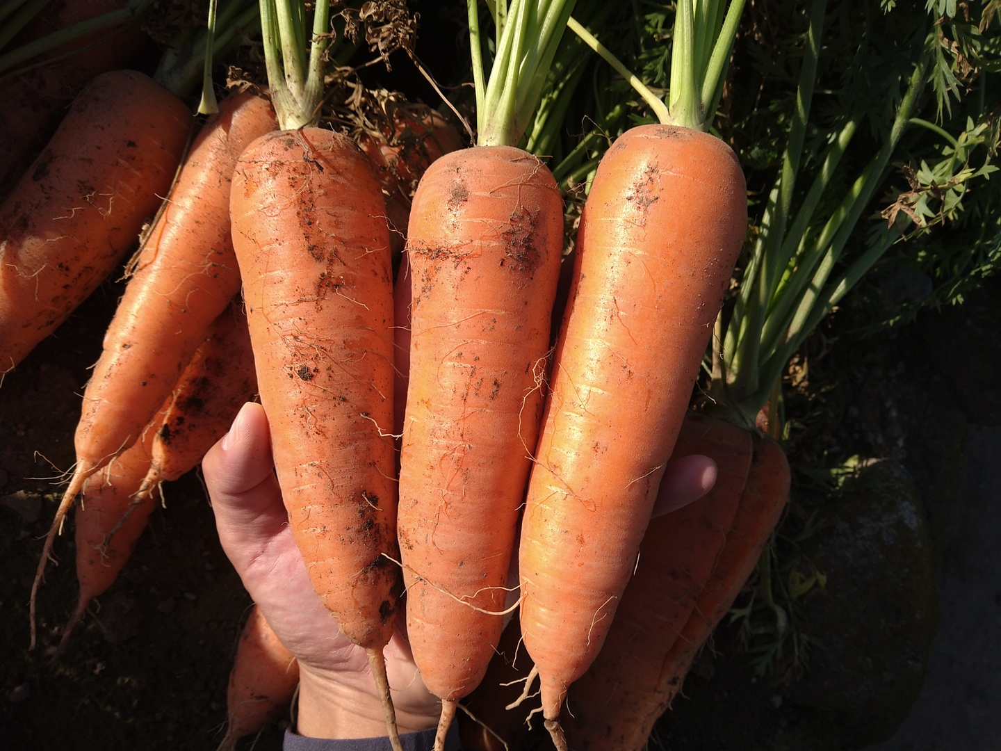 採れたての人参を土付きで発送しますので、洗い上がりの鮮やかな色をお楽しみ下さい。