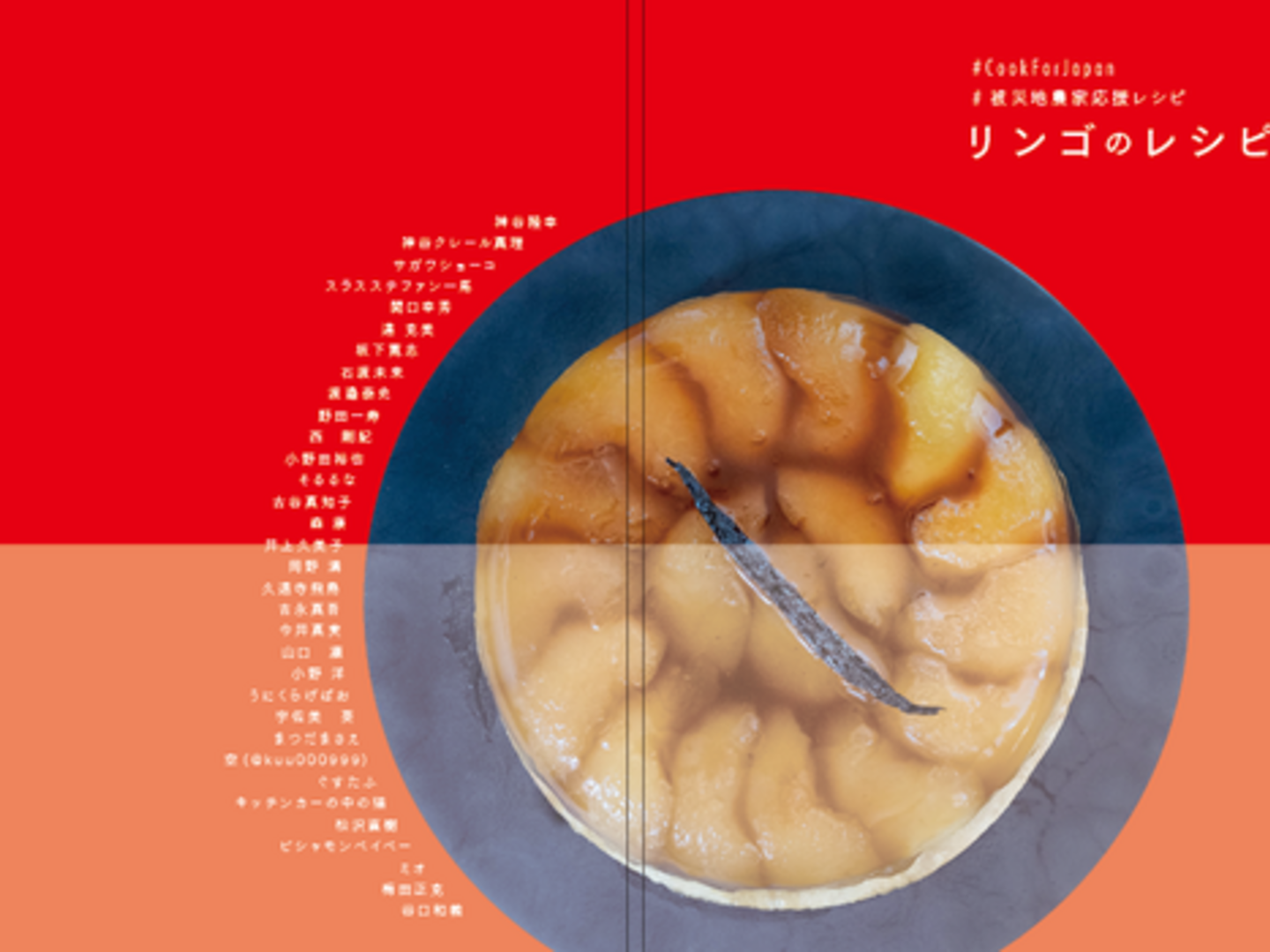 「りんごのレシピ」の中には、農家応援レシピとしてリンゴのレシピを投稿いただいたシェフやパティシエ、料理研究家の方や料理が好きな方全35人にレシピを寄稿いただいています。