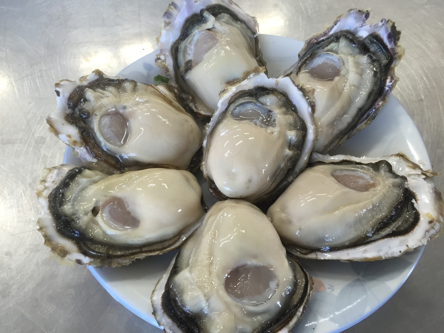 従来の方法(カルチ式)で、手間暇かけて丹念に育てた肉厚の真牡蠣です。10㎝程の牡蠣ですが、ふっくらプリプリして、その余韻が印象的で、とても食べやすいです!
