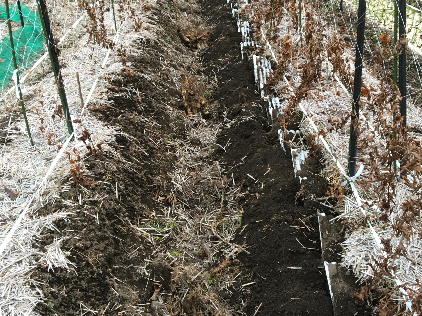- 2 自家製燻炭、豆殻、糠、マコモを自然に返しています。