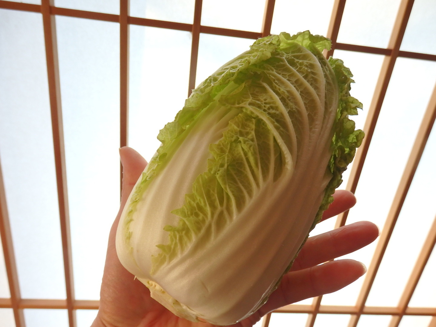 手のひらに乗るちびっこ白菜。小っちゃくてもちゃんと白菜。