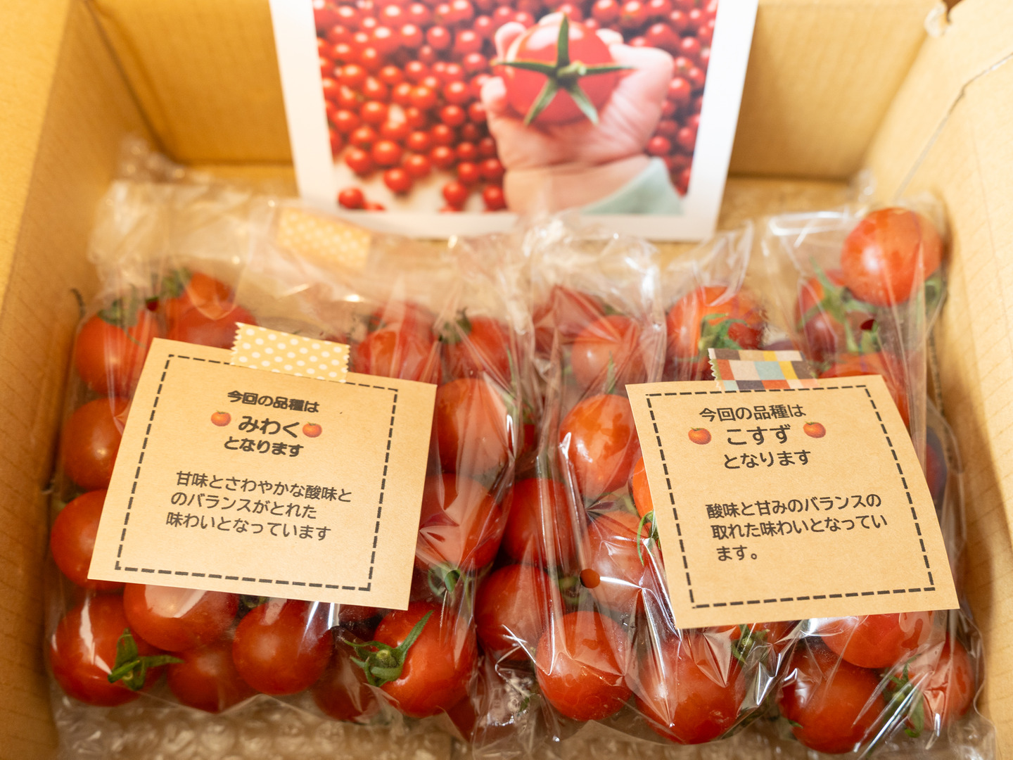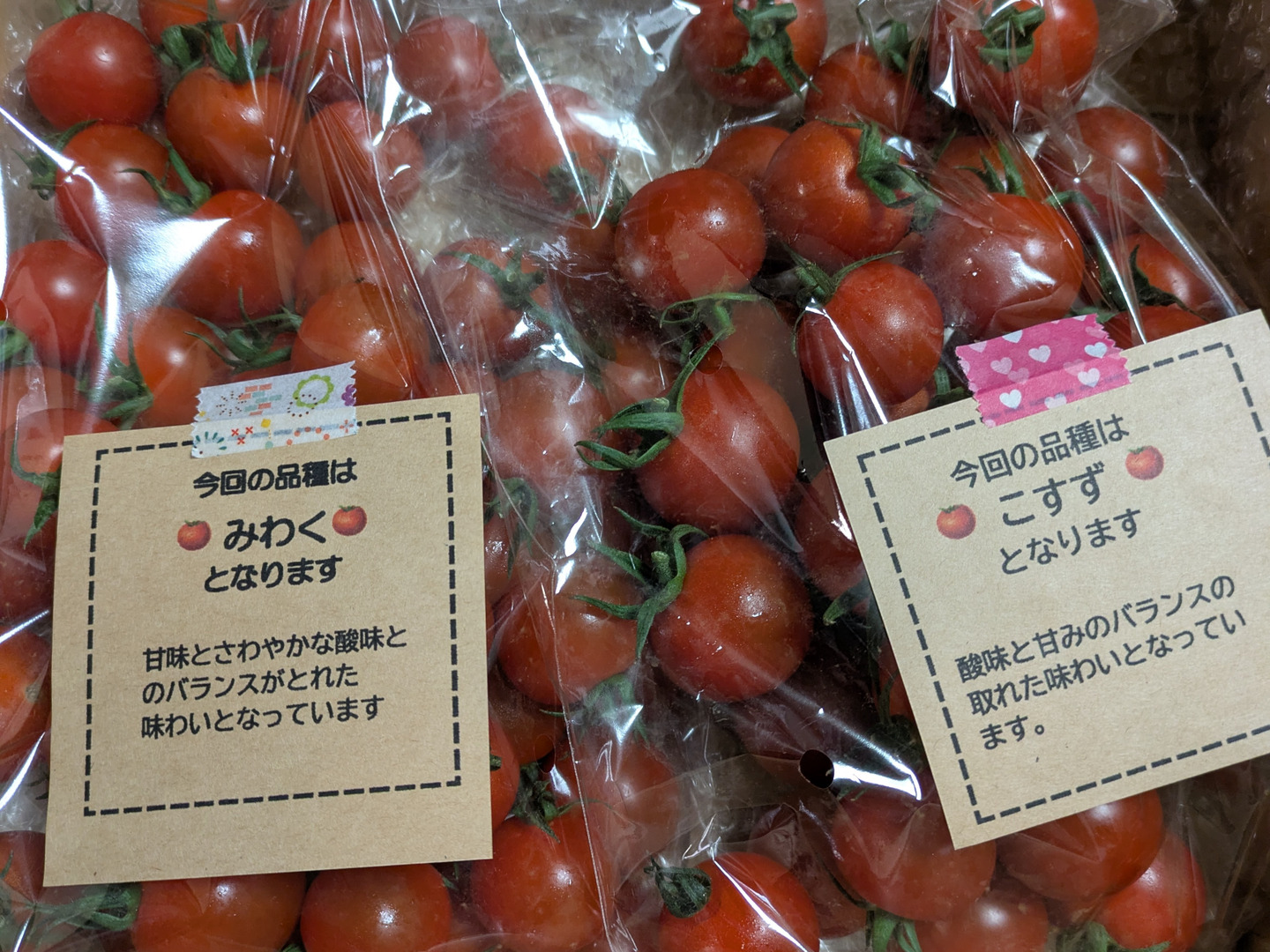 こひげとベリーを除いた4品種の中からその日のおすすめの2品種を入れてお届けします(収穫時期によっては1品種のお届けの場合もあります)